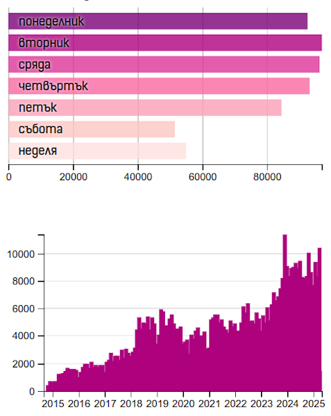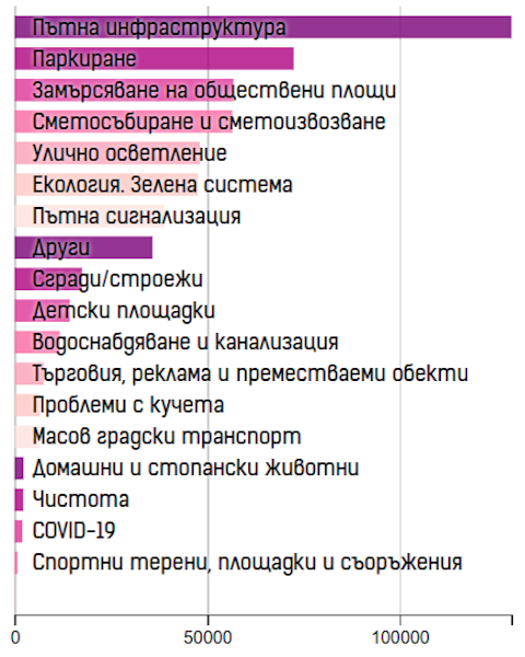 Call.sofia.bg e порталът на Столична община за подаване на сигнали, предложения и оплаквания за нередности в градската среда. Порталът помага да следим развитието на собствените си сигнали и получени отговори от общината. Тази карта показва над 570 хиляди сигнала, подадени между 2015 г. и 2025 г.