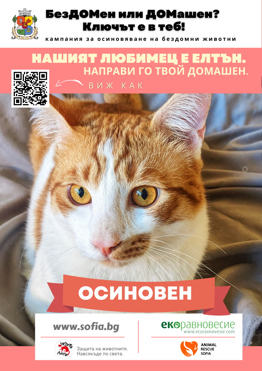 Благодарение на всичките грижи на ветеринарния екип на ЧЕТИРИ ЛАПИ и доста кучешки грижи, Елтън и останалите котета оздравяват. Те пораснаха и станаха прекрасни, силни, бели като пресен сняг котки. Някои намериха своя дом, но Елтън все още търси.