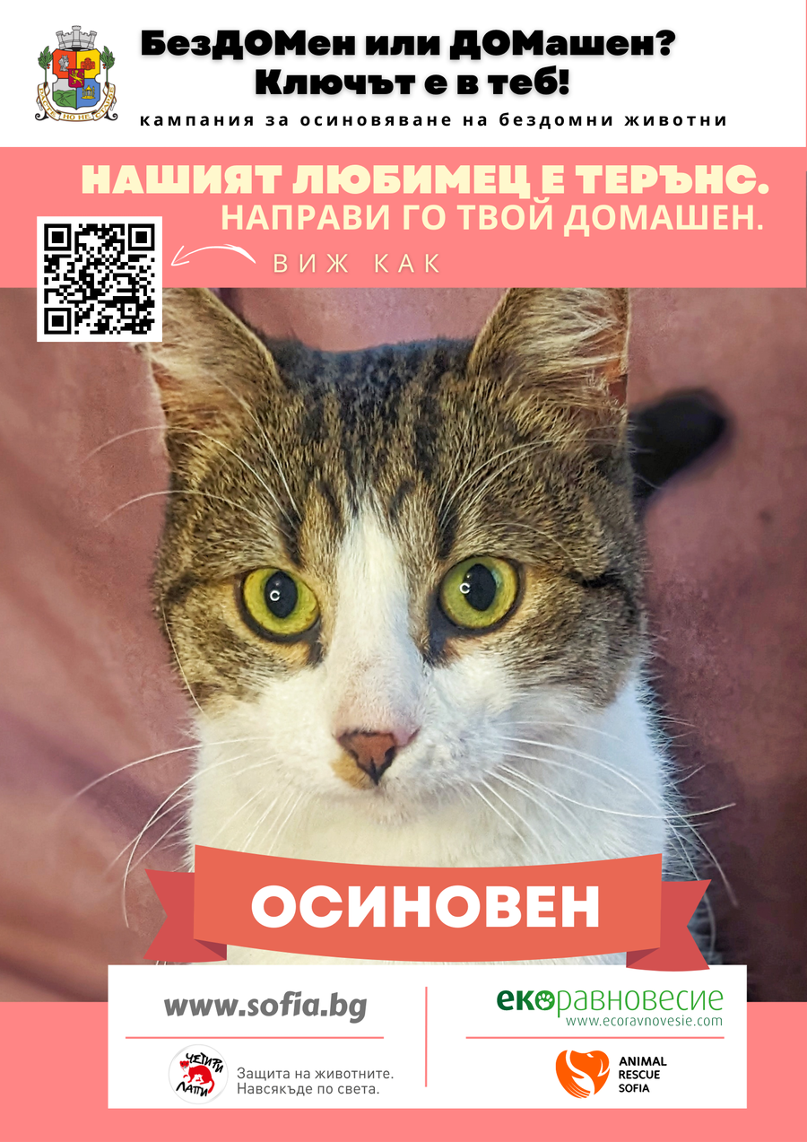 Терънс е една много специална за нас котка. През ноември миналата година е подаден сигнал, че непозната котка се разхожда безстопанствена из етажите на офис сграда. Никой не го познава, никой не е видял как е влязъл там. От деня, в който е намерен, той не показва никакъв страх от хора и никакво желание да бяга където и да е. Терънс не просто дава – той иска да бъде гален и гушнат.
