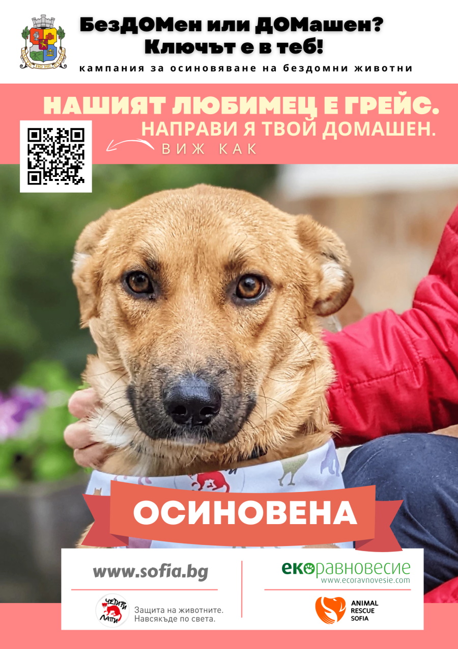 Сега лудетината Грейс е ваксинирана, чипирана, обезпаразитена и кастрирана в клиниката за бездомни животни Банкя. Тя чака своя бъдещ другар и човешки приятел, който да се грижи за нея. Ако вие искате да осиновите Грейс, тя обещава да си играе с вас всеки ден!
