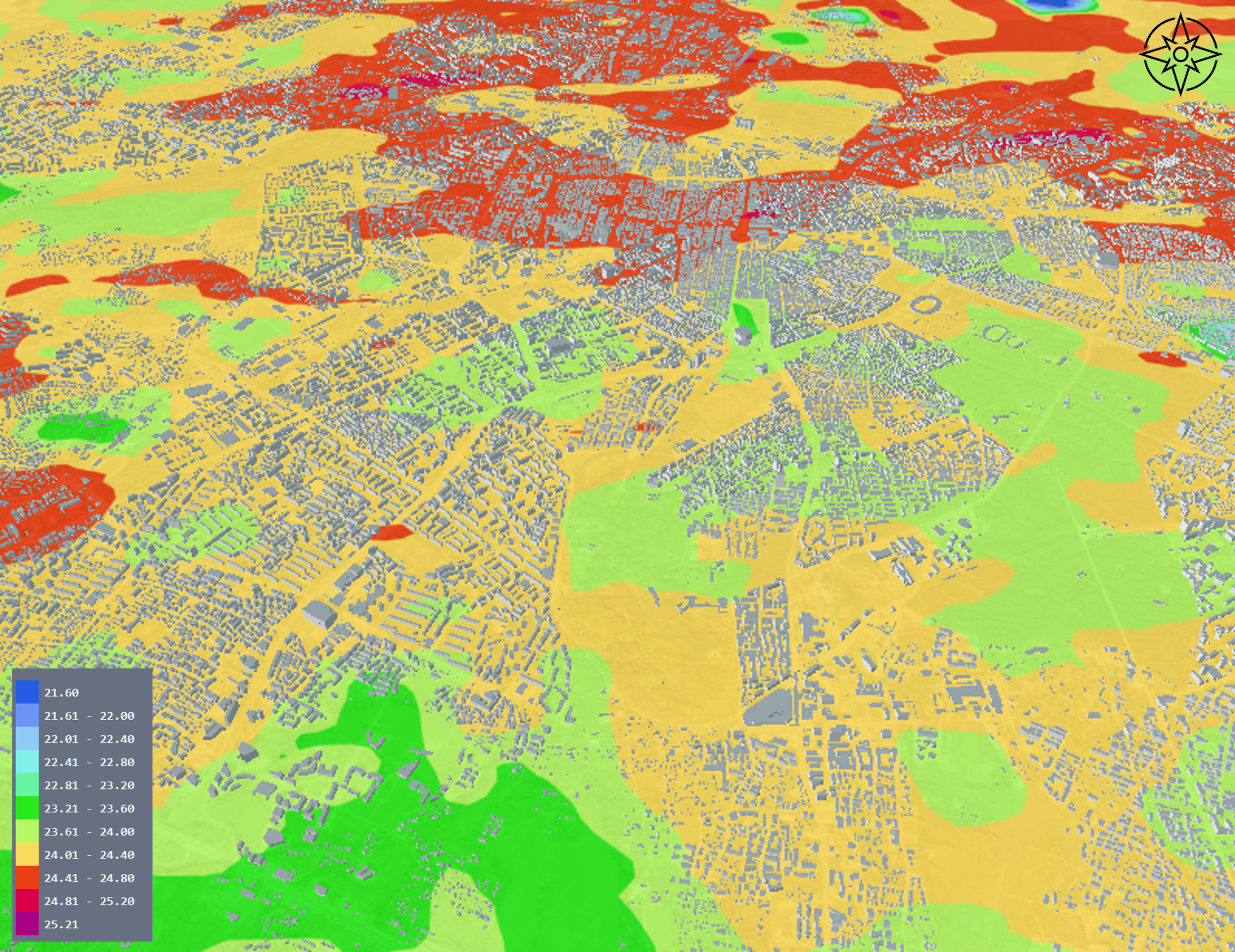 Особено важни са 3D картите, които не само показват зоните с най-голям топлинен риск, но и визуализират как той се променя между различни градски пространства. Така те стават безценен инструмент за планиране на по-безопасна и устойчива градска среда, особено в условията на нарастващи горещи вълни, предизвикани от климатичните промени.