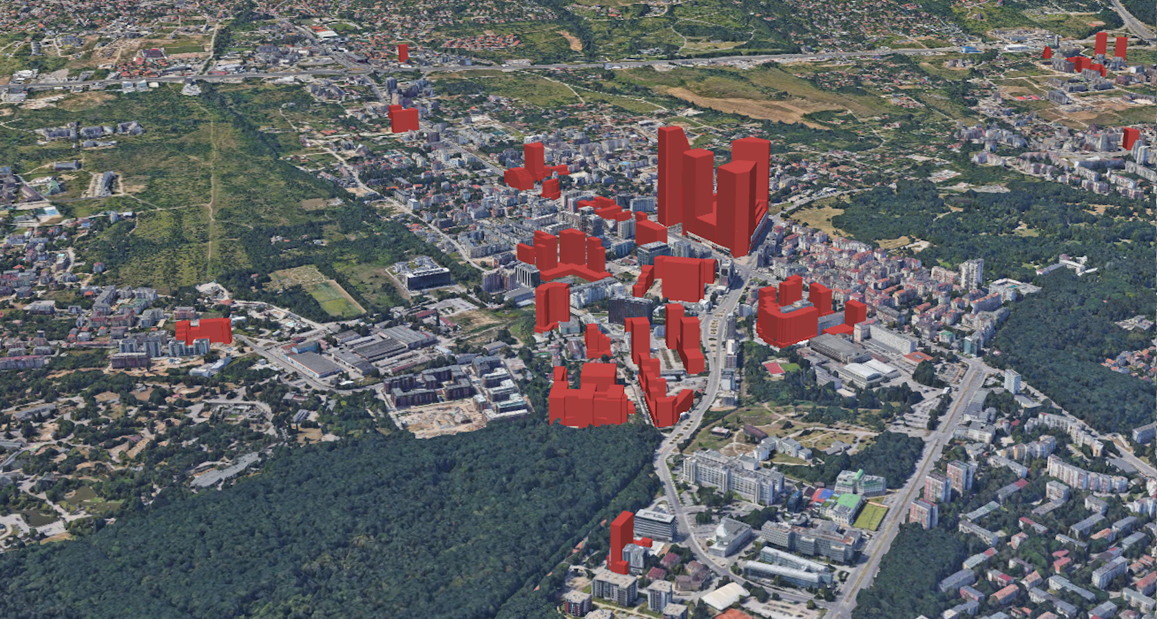 Въз основа на решения на Столичен общински съвет, Направление „Архитектура и градоустройство“ и Столична община са били издадени множество подробни устройствени планове през последните десетилетия. Те заедно със съпътстващите скици са нанесени на специален слой в портала на общината. Тази визуализация прави опит да покаже сградите, които са били нанесени с височина над 50 метра на този слой, и е възможно да бъдат построени на база налични решения.