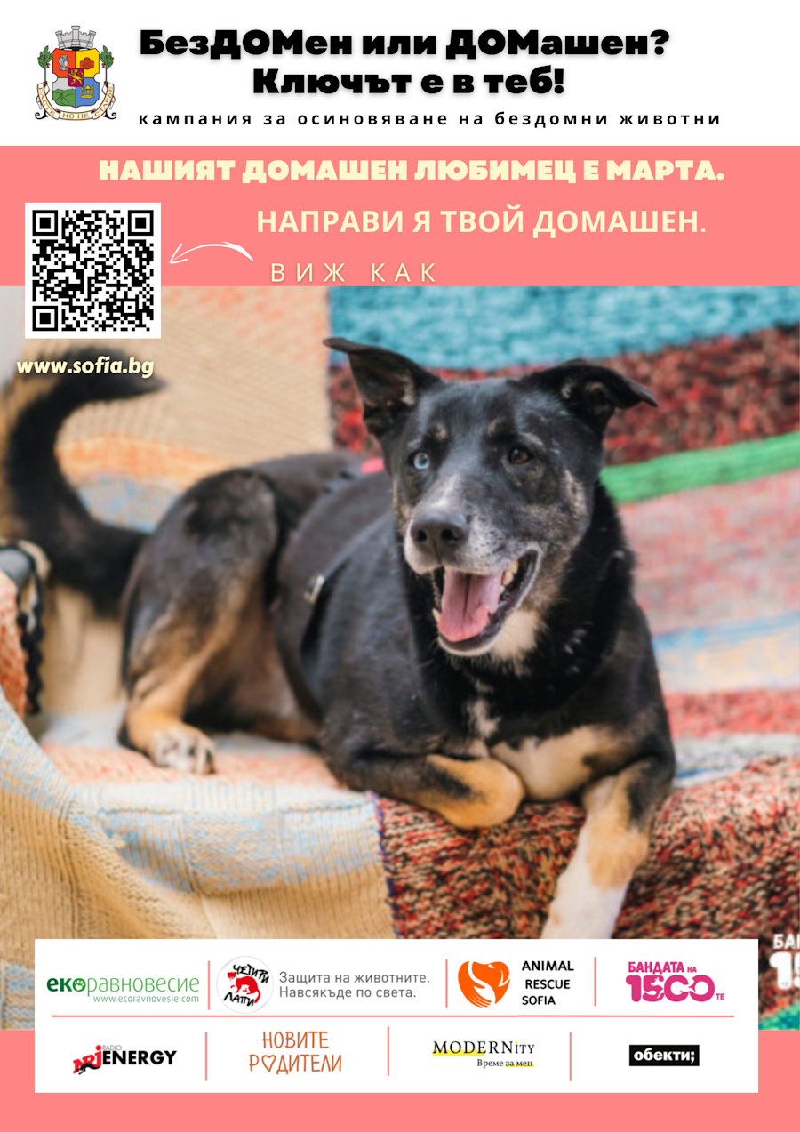 Над 100 общински институции се включват в кампанията на Столична община за осиновяване на бездомни животни „БезДОМен или ДОМашен. Ключът е в теб!“, която стартира на 24 януари 2023 г.