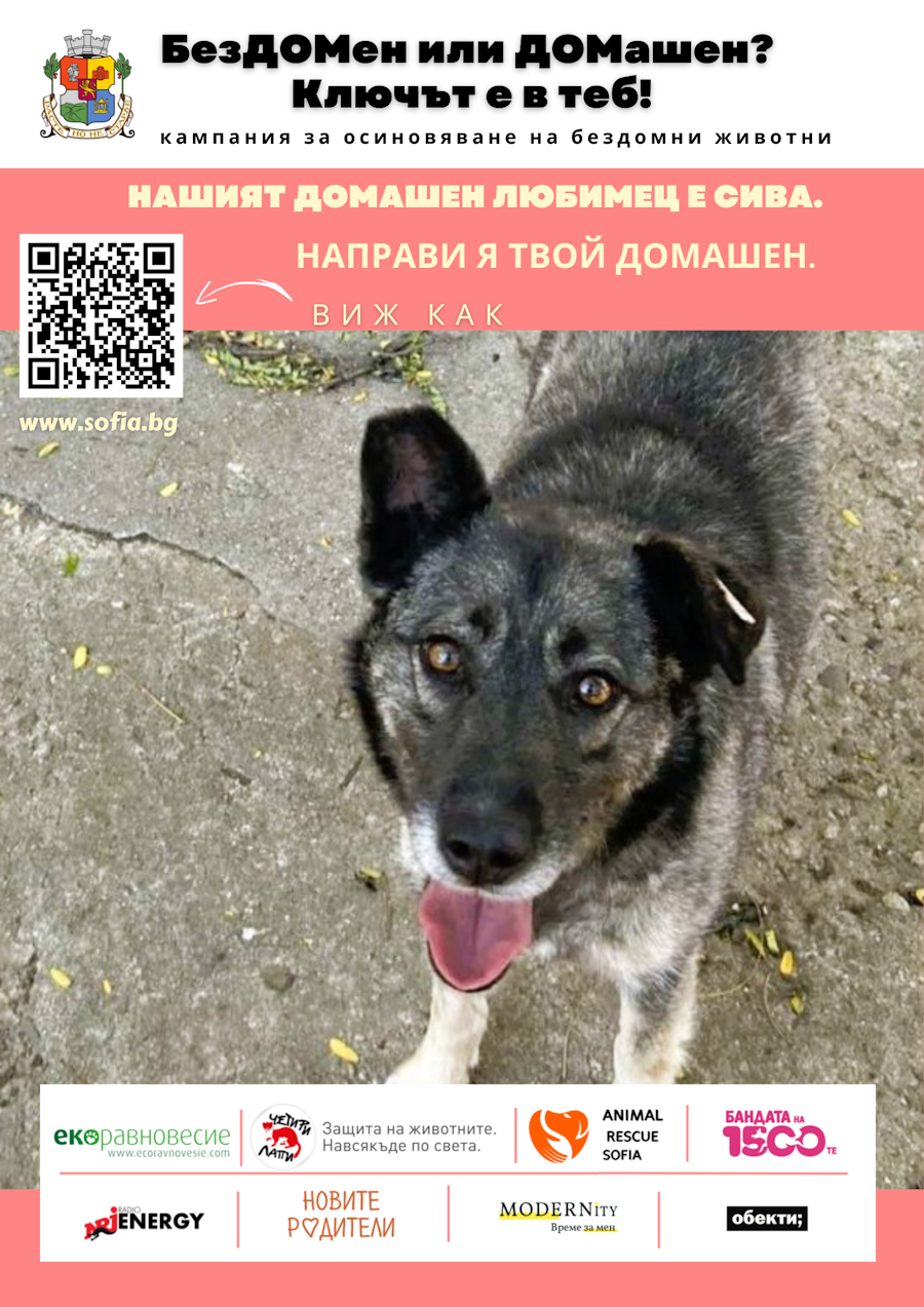 Всеки плакат е със снимка на различен четириног опашатко, а QR код отвежда към историята на животинчето от приют или природозащитна организация и начина за осиновяването му.