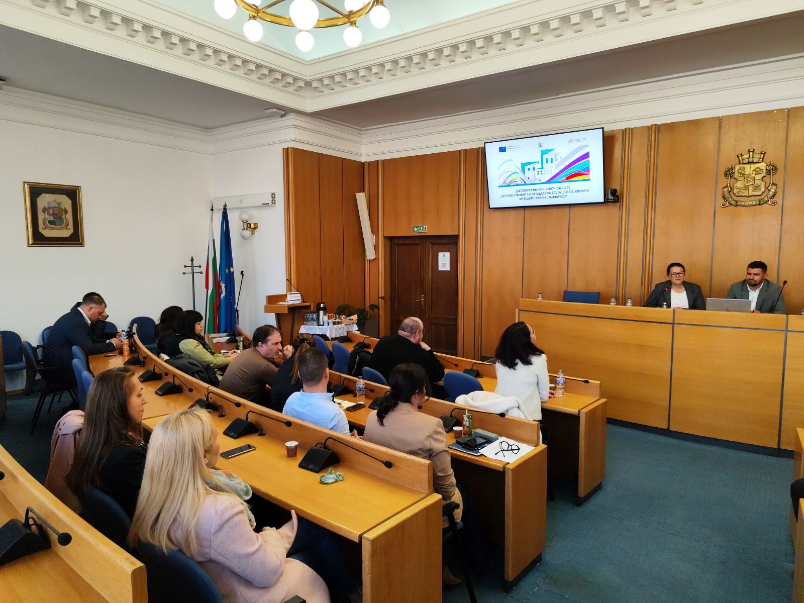 Г-н Амзин, в качеството си на ръководител на екипа за управление и изпълнение на проекта, информира присъстващите за основните дейности и цели, както и за очакваните резултати от изпълнението на проекта. Реализацията му ще създаде условия за равен достъп до образование чрез изграждане на благоприятна, енергийно ефективна, подкрепяща и мотивираща образователна среда, която съдейства за повишаване желанието за учене и подобряване на образователните резултати на учениците в 201. ОУ „Св. Св. Кирил и Методий“.