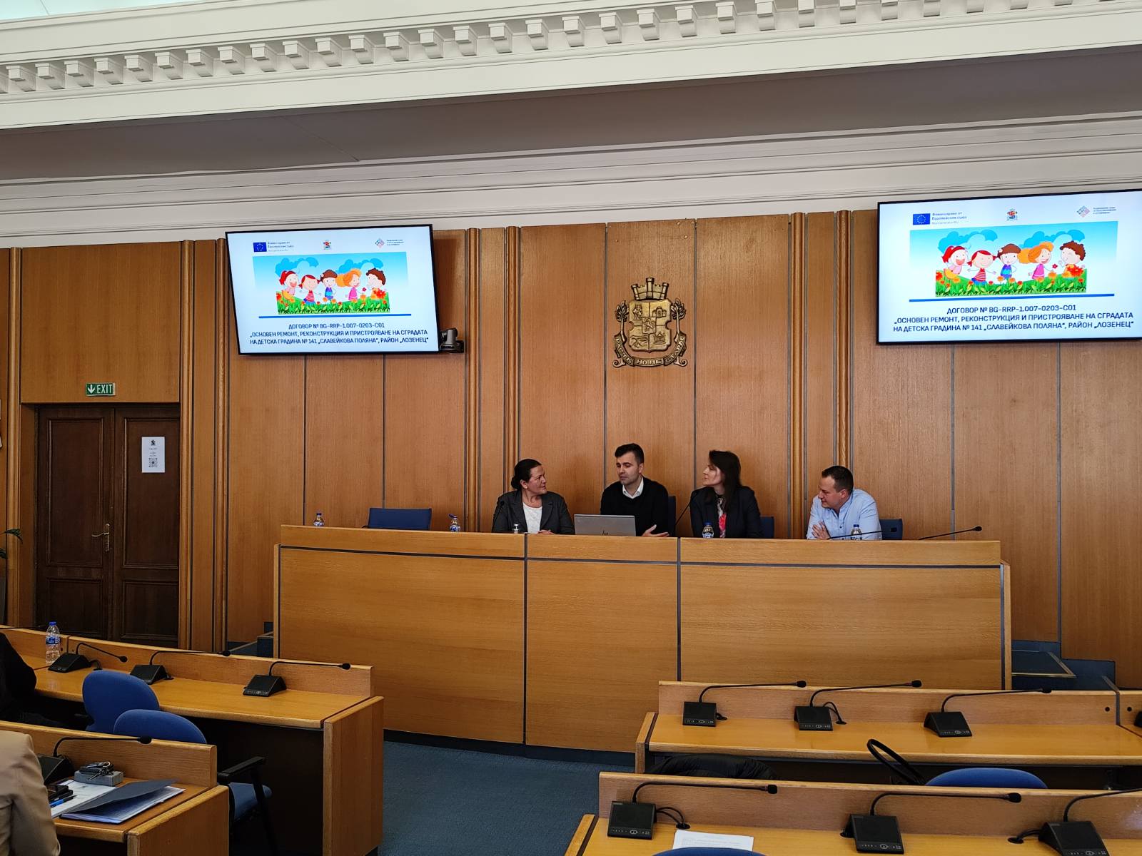 На 29.10.2025 г. в Зала 5 в Столична община се проведе встъпителна пресконференция за стартиране изпълнението на проект № BG-RRP-1.007-0203-C01 „Основен ремонт, реконструкция и пристрояване на сградата на Детска градина 141 „Славейкова поляна“, район „Лозенец“. Инвестицията е финансирана по Националния план за възстановяване и устойчивост (НПВУ), Процедура за предоставяне на средства от Механизма за възстановяване и устойчивост BG-RRP-1.007 „Модернизация на образователна среда“.