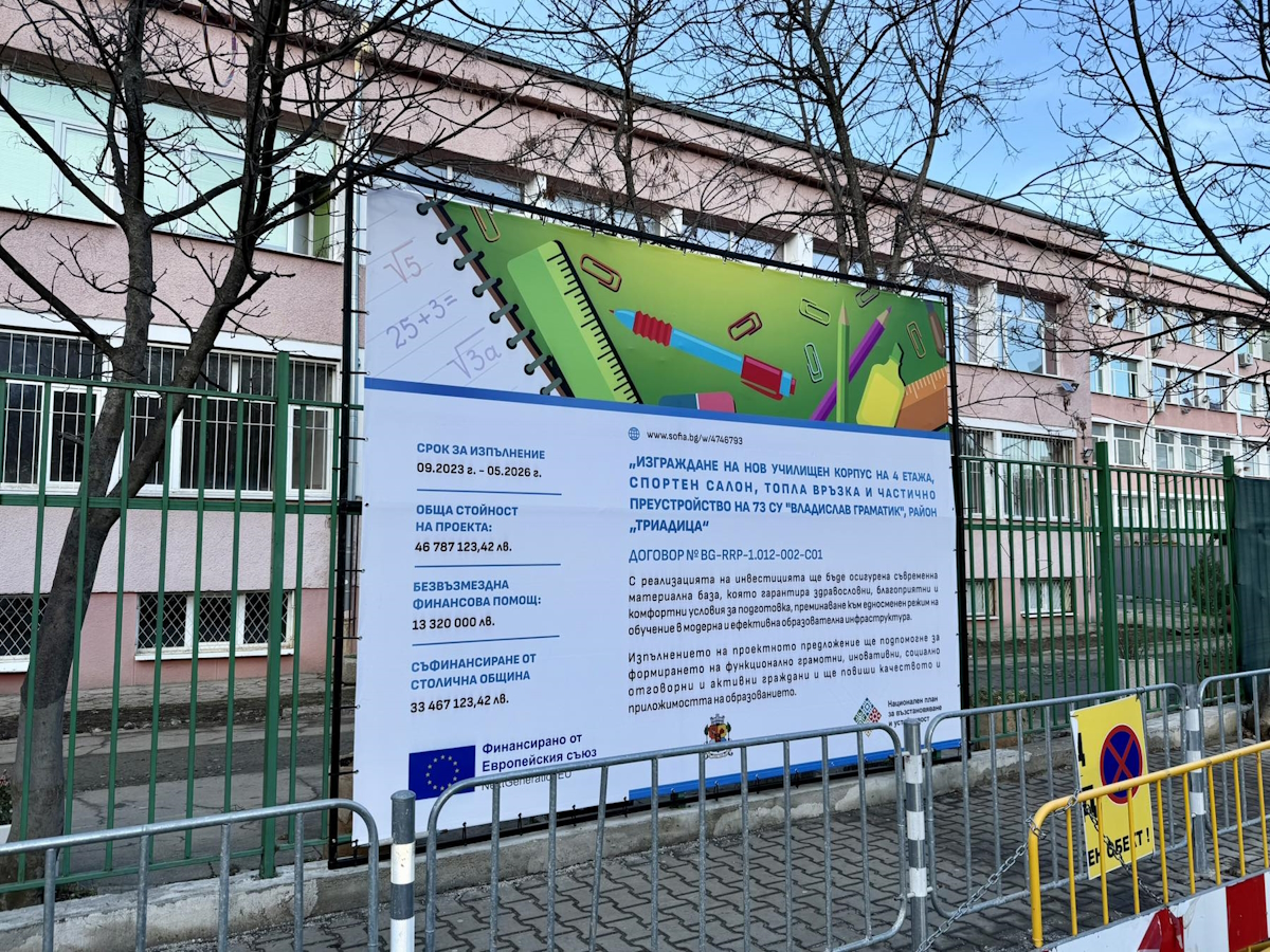 • За 73. СУ „Владислав Граматик“, район „Триадица“ – след проведени процедури по реда на Закона за обществените поръчки, са сключени договори за инженеринг и за упражняване на строителен надзор. За обекта е изготвен инвестиционен проект и е издадено Разрешение за строеж. На 22.04.2025 г. е открита е строителна площадка. Строителните дейности се изпълняват в съответствие с одобрения инвестиционен проект и утвърдения линеен график.