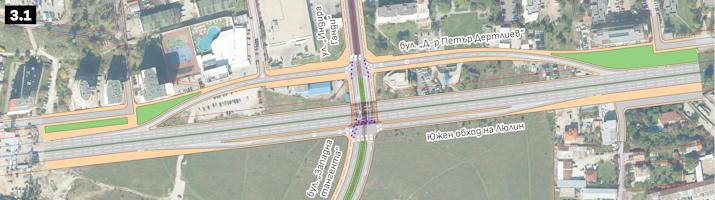 В ОУП на СО е планирано изграждането на пътен възел на кръстовището на бул. „Западна тангента“ и бъдещият Южен обход на Люлин (бул. „Д-р Петър Дертлиев“ - нов). В разработката на ПКТП се предлагат две решения за кръстовището, като и при двете на горно ниво е изведено трасето на Южния обход на Люлин (бул. „Д-р Петър Дертлиев “ - нов).