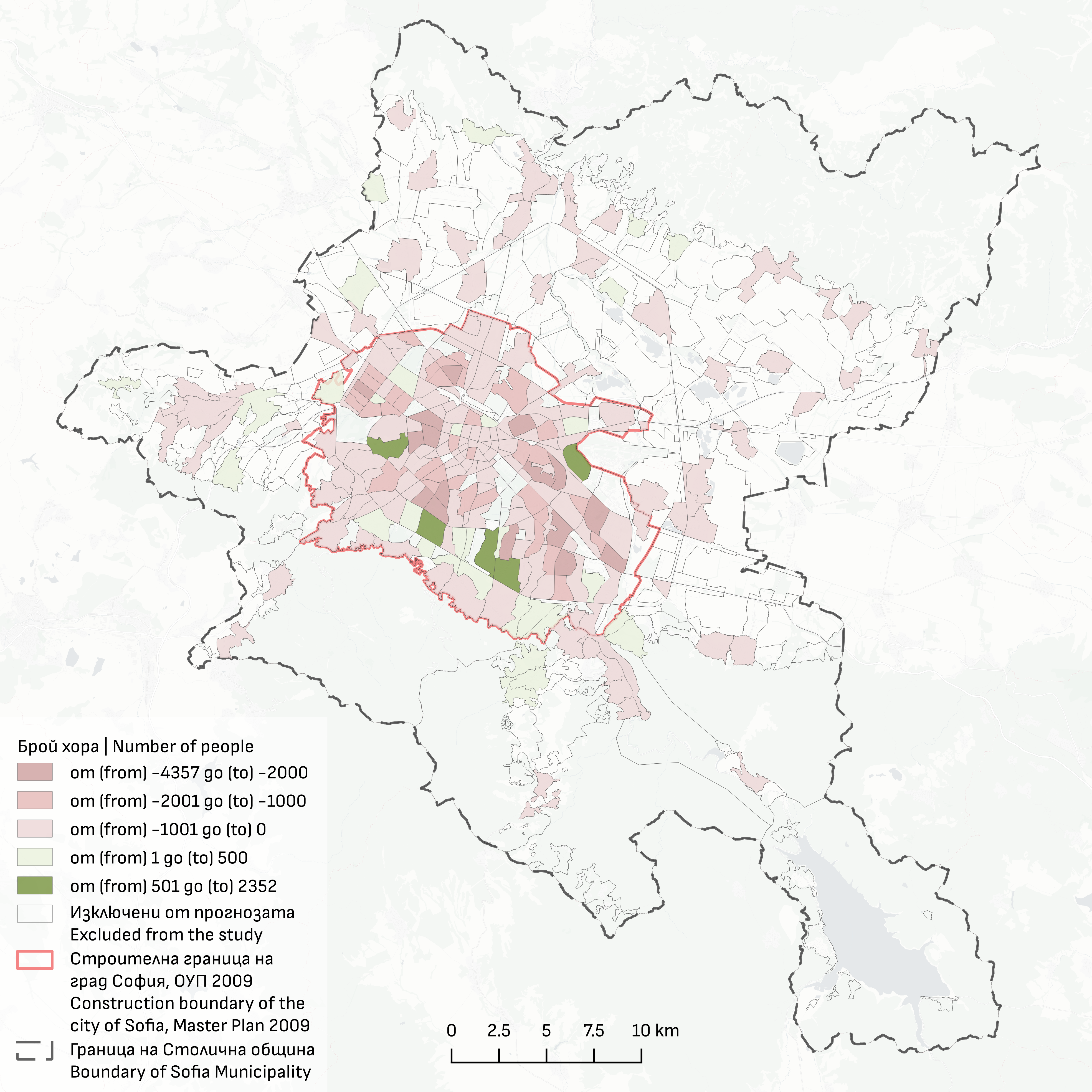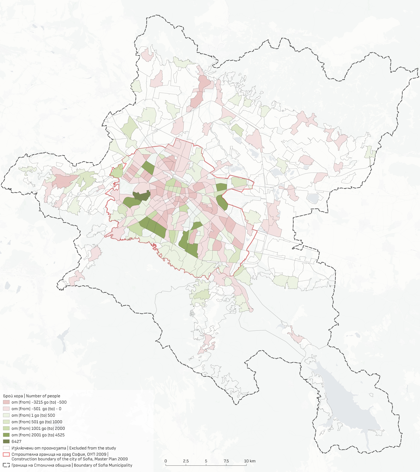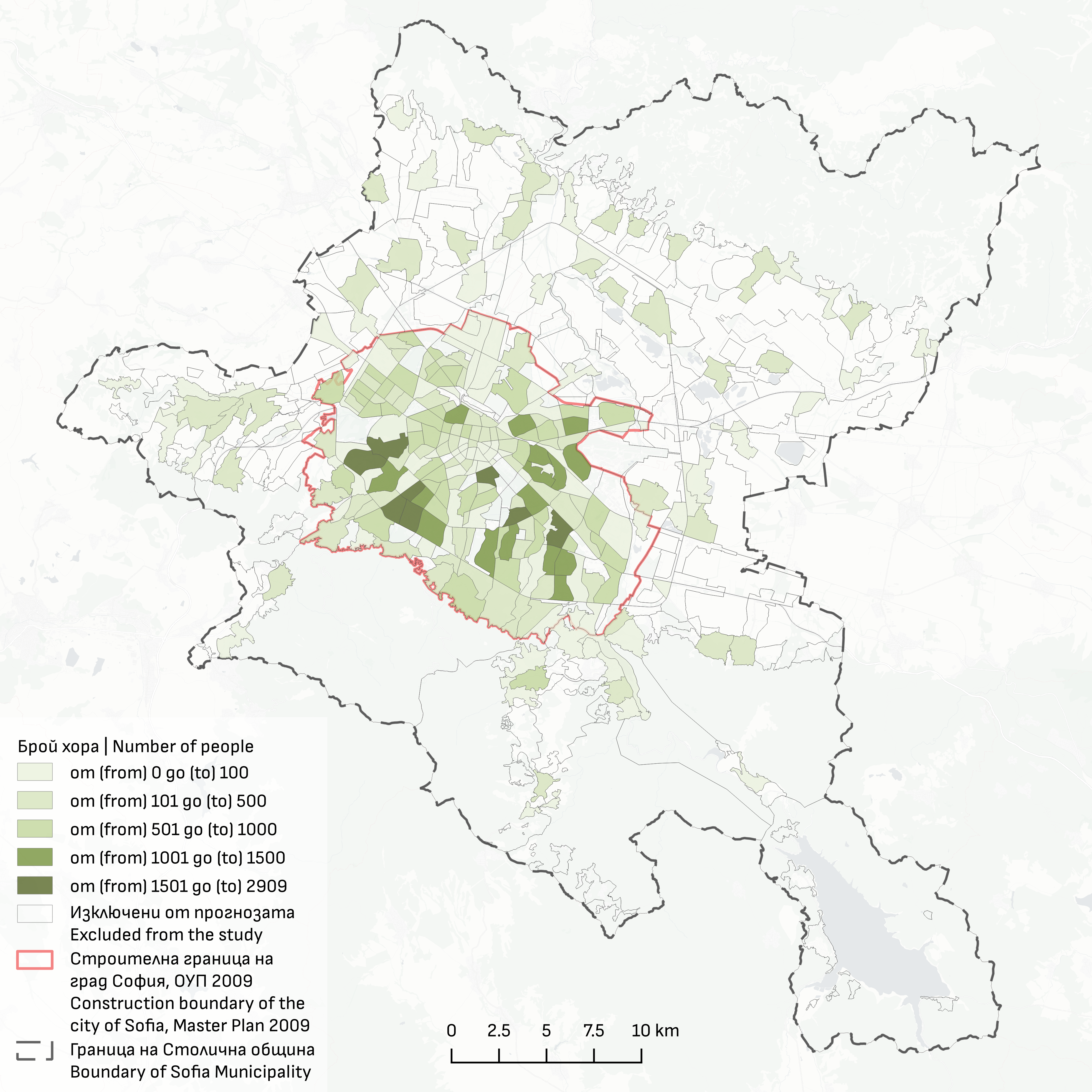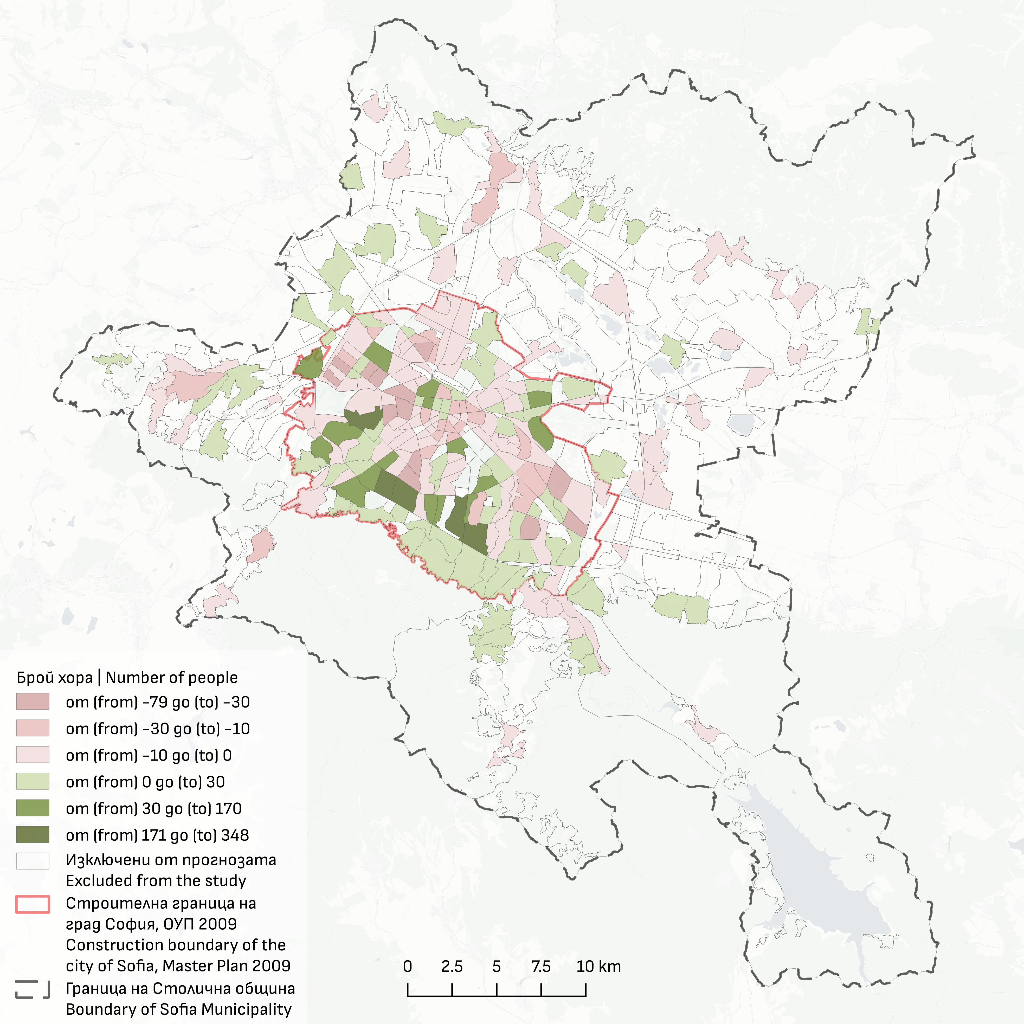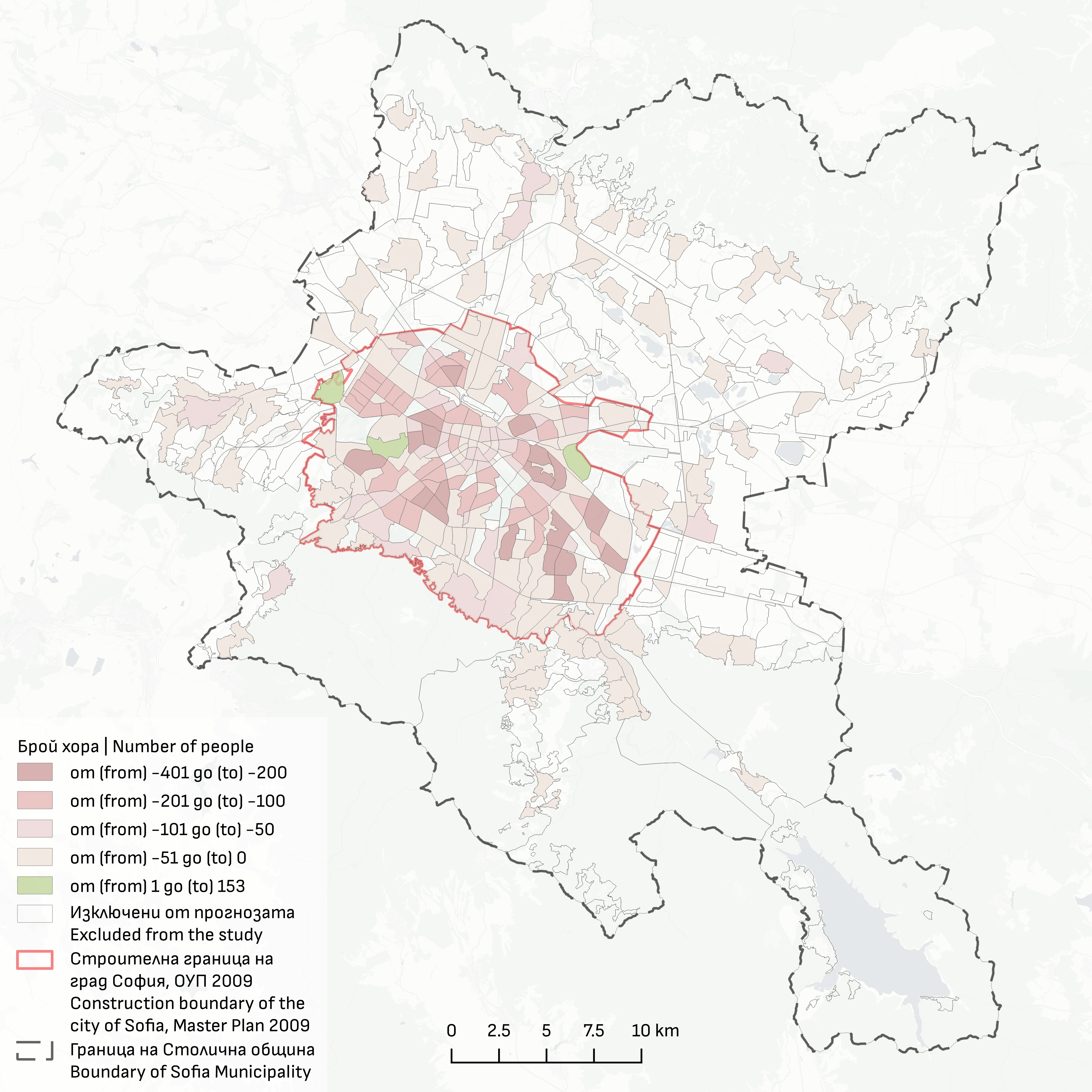 Прогнозата показва трайна тенденция за повишаване на населението в южните части на общината и намаляване на жилищните функции на централните части на град София.