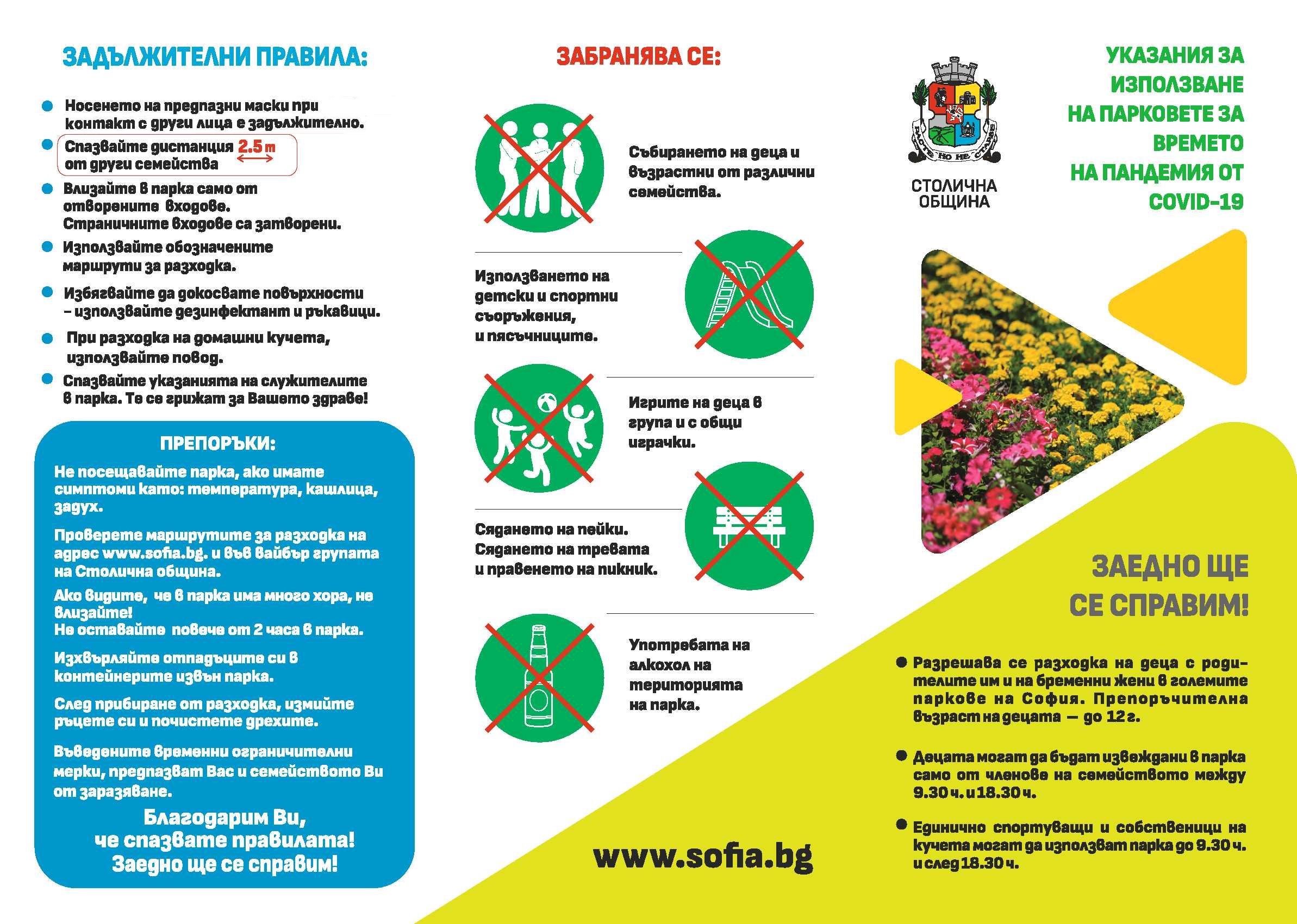 УКАЗАНИЯ ЗА ИЗПОЛЗВАНЕ НА ПАРКОВЕТЕ ЗА ВРЕМЕТО НА ПАНДЕМИЯ ОТ COVID-19