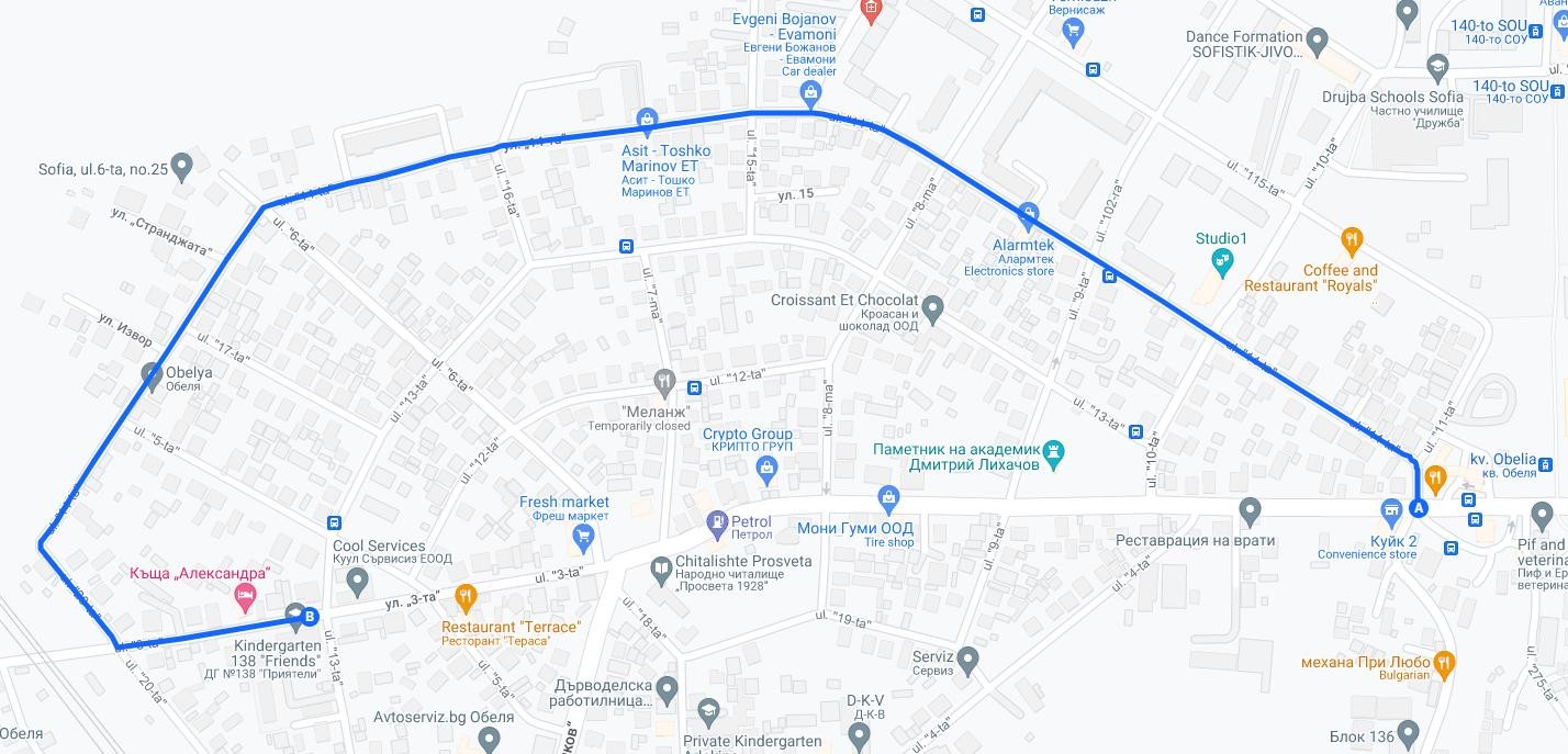 Схема на движение във връзка с достъпа до ДГ № 138 "Приятели"