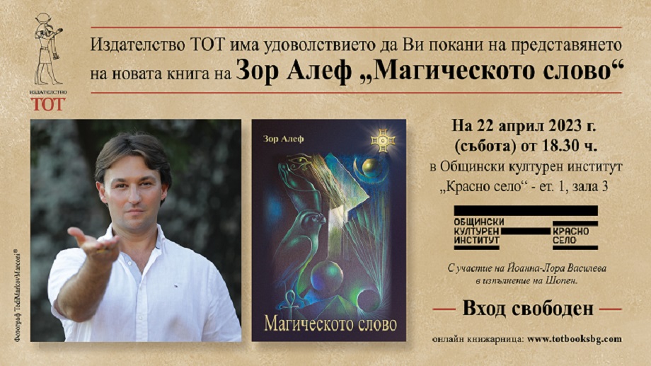 Издателство ТОТ има удоволствието да Ви покани на представянето на новата книга на Зор Алеф – „Магическото слово“.