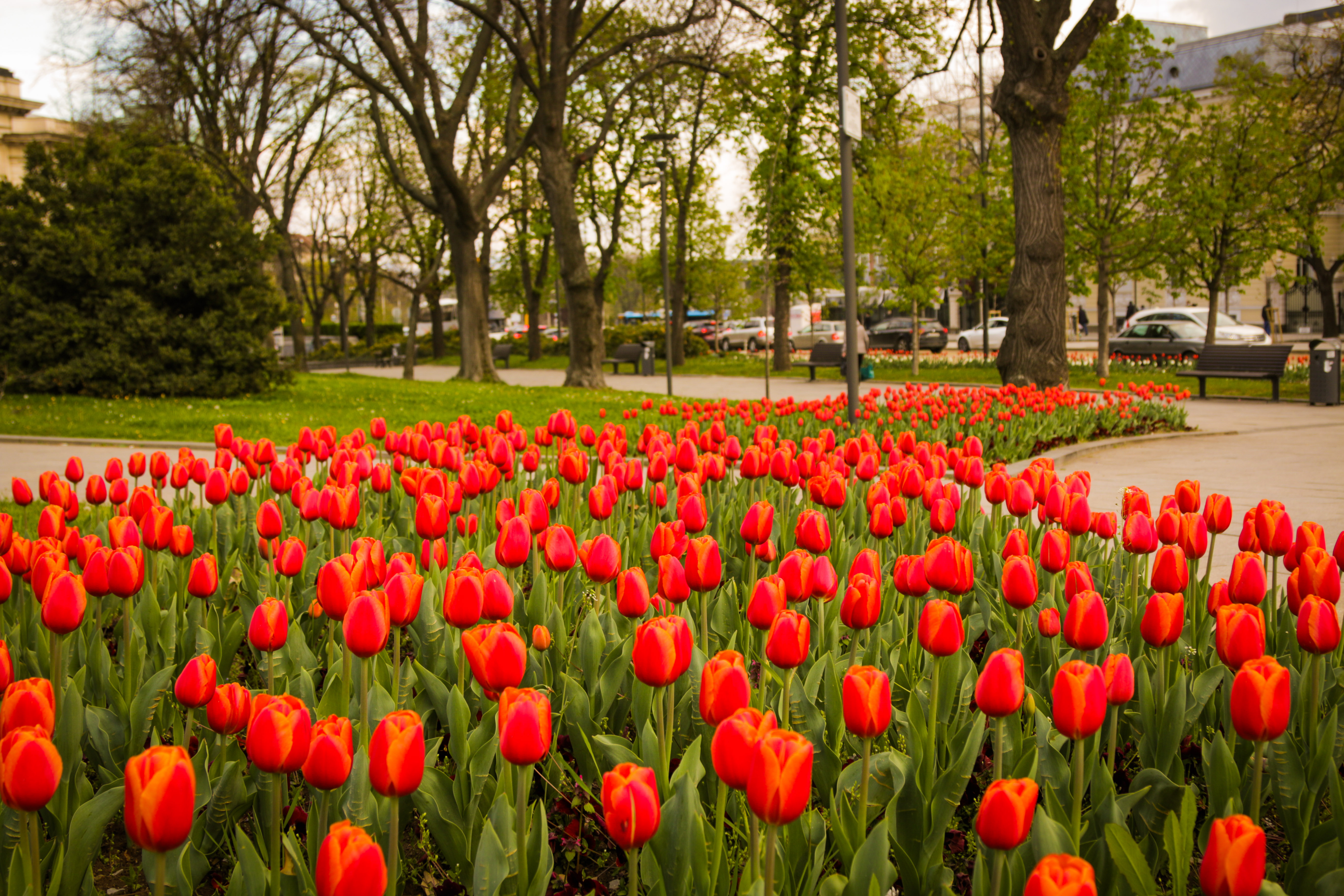 Лалета са разцъфнали в Градската градина, Княжеска градина, парка на НДК и др. Цветни композиции на зеленина и различни пролетни растения оформят ивицата на бул. “Евлоги и Христо Георгиеви“.