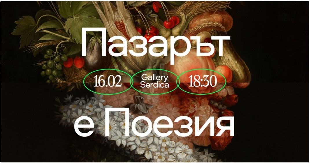 Днес, 16 февруари, в 18:30 часа, в галерия „Сердика“ на Женския пазар ще можете да чуете стихове на съвременни автори – Стефан Гончаров, Хаири Хамдан, Лъчезар Лозанов, Мария Македонска и Александър Иванов, съпроводени от музикалните изпълнения на Георги Павлов и Боян Цонев.