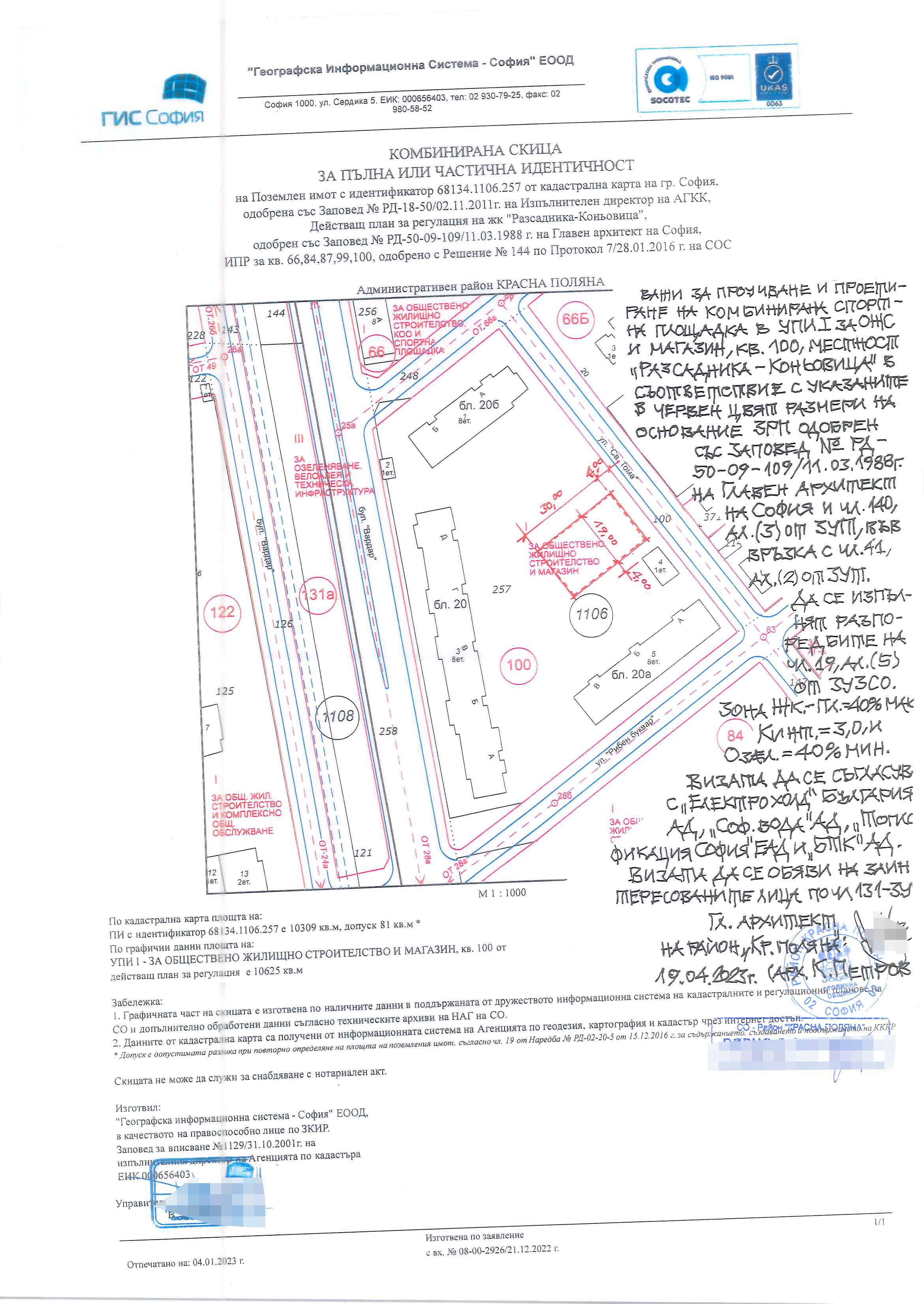Район „Красна поляна” – СО, на основание чл. 10, чл. 2 във връзка с чл. 4, ал. 1, т. 5 и чл. 8, ал. 1, т. 3 от Наредбата за реда и начина за провеждане на обществени обсъждания в областта на пространственото развитие и устройството на територията на Столична община,приета с Решение № 661 по Протокол № 41/12.10.2017 год. на СОС, съобщава че е издадена Заповед № РКП23-РД56-84/27.04.2023 год. на кмета на район „Красна поляна” за провеждане на обществено обсъждане на виза за проучване и проектиране на комбинирана спортна площадка, издадена от главен архитект на район „Красна поляна” на 19.04.23 год. в ПИ с идентификатор 68134.1106.257, УПИ I-за ОЖС и магазин, кв. 100, м. „Разсадника-Коньовица”.