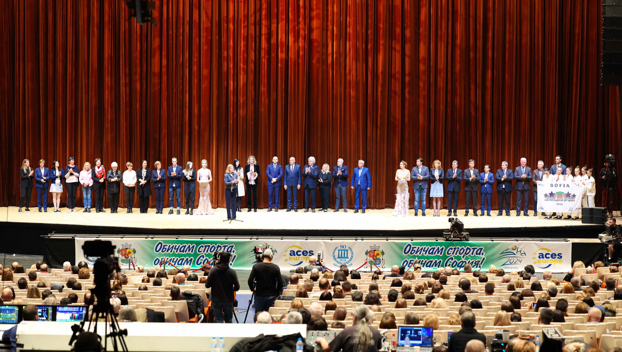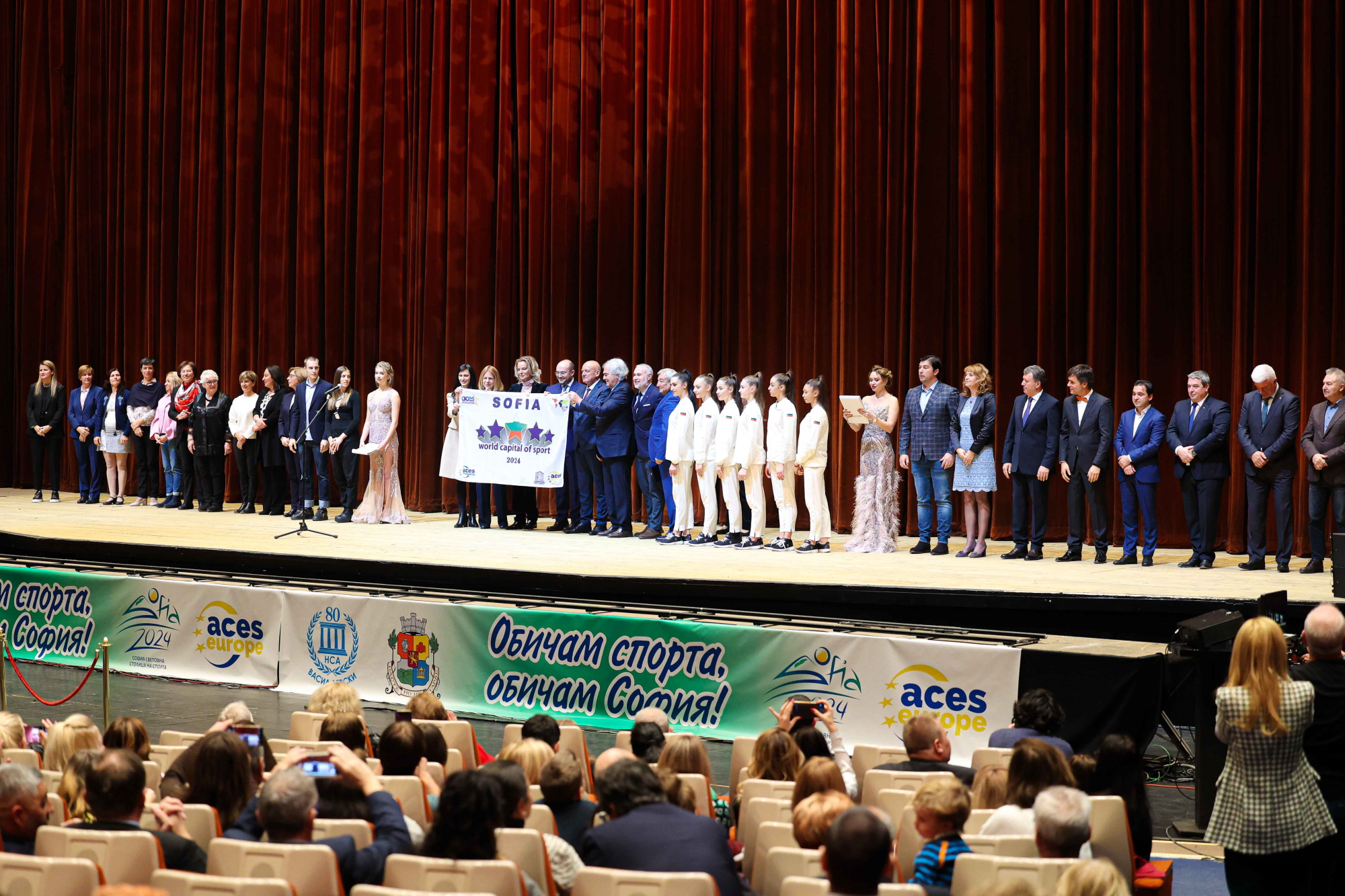 Аудиторията избухна в аплодисменти още в началото, когато водещите – фигуристката Александра Фейгин и гимнастичката Ренета Камберова – поканиха на сцената олимпийски легенди и млади български таланти, спомогнали София да получи престижната титла. Легендарните спортисти бяха водени от световната рекордьорка в скока на височина и председател на Българския олимпийски комитет Стефка Костадинова, сред тях бяха Ваня Гешева, Евгения Раданова, Екатерина Дафовска, Здравка Йорданова, Йорданка Благоева, Мария Гроздева, Румяна Нейкова, Стойка Кръстева, Таня Богомилова, Тереза Маринова. Сред официалните гости бяха още българският еврокомисар Мария Габриел, Георги Георгиев – председател на Столичен общински съвет и председател на Фондация „София – европейска столица на спорта“, проф. Николай Изов – ректор на Национална спортна академия „Васил Левски“, Анатоли Илиев – зам.-председател на „София – европейска столица на спорта, членовете на Изпълнителния борд на АCES EUROPE – Асоциацията на европейските градове и столица на спорта, членовете на Управителния съвет на „София – европейска столица на спорта“ и др.