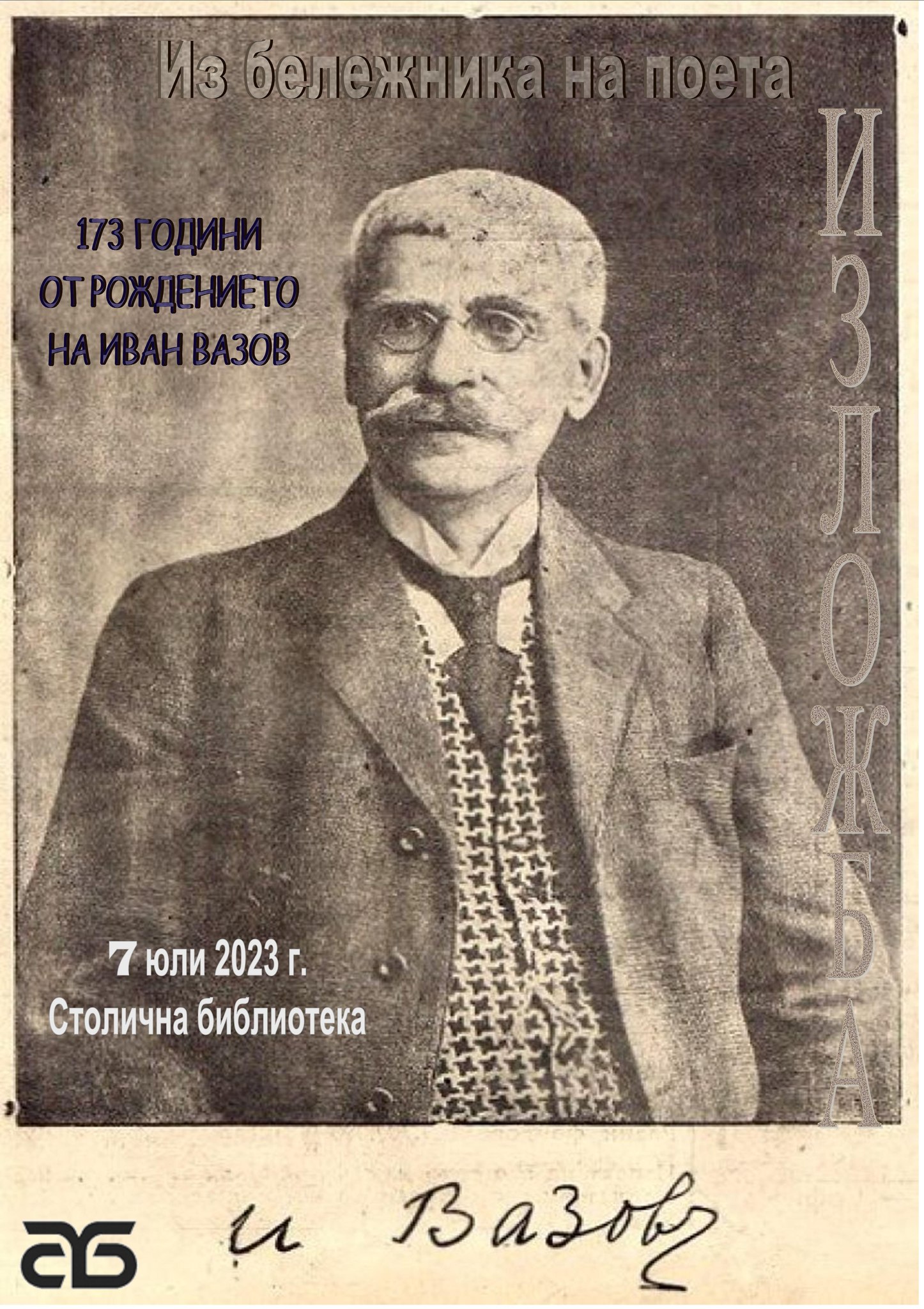 Столична библиотека отбелязва 173 години от рождението на Иван Вазов с документалната изложба „Из бележника на поета“, в която са представени уникални първи издания на Вазов, биографични книги за него, редки екземпляри с негови автографи и посвещения, част от личните библиотеки на д-р Константин Стоилов, Кирил Христов, Петко Тихолов, Васил Пундев.