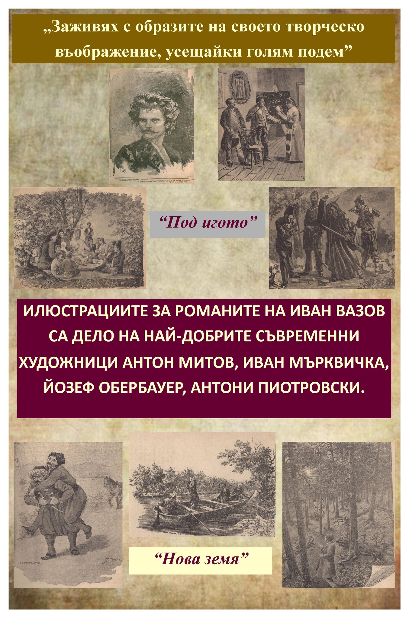 В изложбата също са включени и фотокопия на илюстрации към романите на Вазов – от Йозеф Обербауер, Иван Мърквичка, Антон Митов, Антони Пиотровски, както и на портрети на Вазов, скицирани от Иван Шишманов, Чакъров, Харалампи Тачев, Никола Тузсузов.