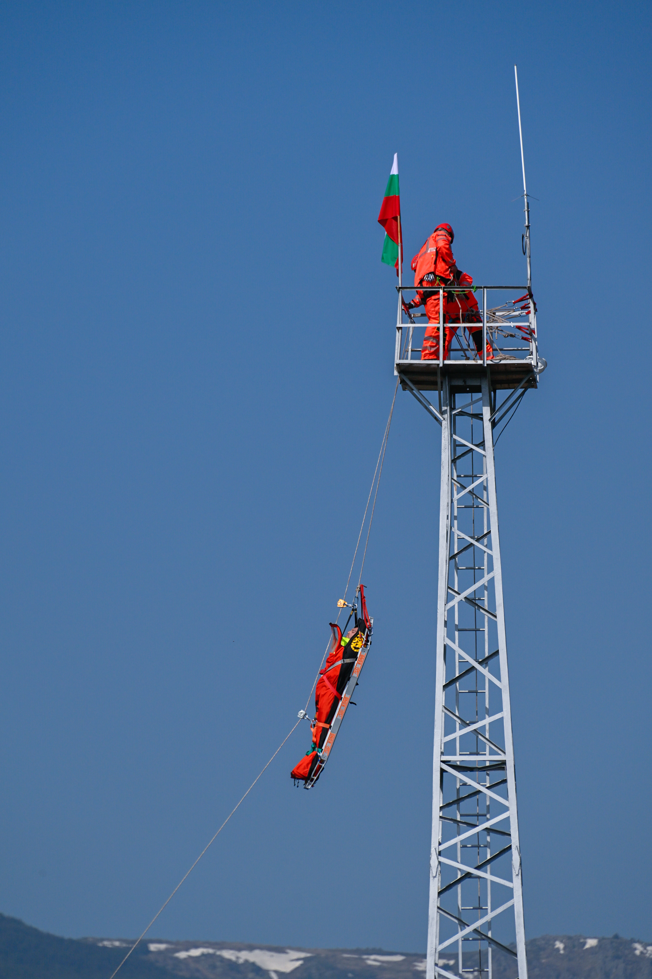Кметът Терзиев участва и в обучението за спасяване по алпийски способ. Той се включи като се качи на алпийския въжен тролей.