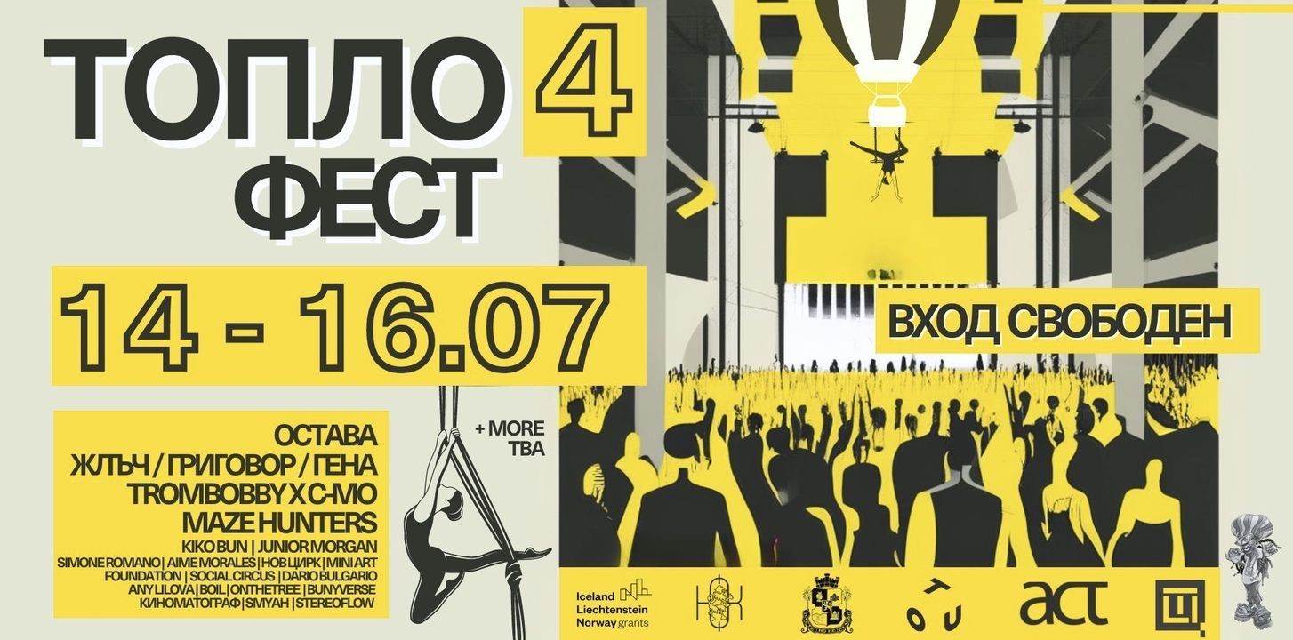 „ТОПЛО ФЕСТ 4“ се осъществява в рамките на проект „Утвърждаване на РЦСИ ТОПЛОЦЕНТРАЛА като модерно пространство за изкуство, култура и диалог“ BGCULTURE-2.001-0090, който се изпълнява с финансова подкрепа в размер на 199 996,93 евро, предоставена от Исландия, Лихтенщайн и Норвегия по линия на Финансовия механизъм на ЕИП 2014 – 2021 г. по Програма PA14 „Културно предприемачество, наследство и сътрудничество“ и се осъществява от Столична община в партньорство с Tou Scene Ставангер, Норвегия и АСТ Асоциация за свободен театър.
