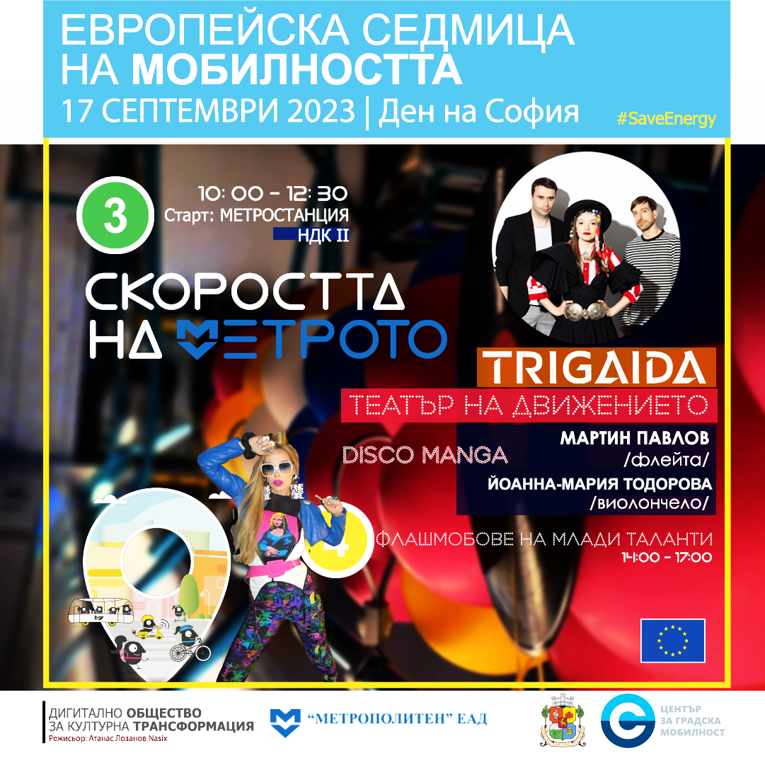 В диапазона от 10:00 до 13:00 ч. на 17 септември 2023 г. по линия 3 на Столичния метрополитен ще се движи трансформирана в сцена за изкуство мотриса, на борда на която ще вземат участие „Тригайда“, музикантите Йоанна-Мария Тодорова и Мартин Павлов към Младежката филхармония „Пионер“ и нашумялата кей-поп група Toxic. Зад пулта ще застане и DISCO MANGA DJ. Събитието стартира точно в 10:00 ч. от метростанция НДК II, по линия 3 с изключителната подкрепа на „Център за градска мобилност“ ЕАД и с домакинството на „МЕТРОПОЛИТЕН“ ЕАД.