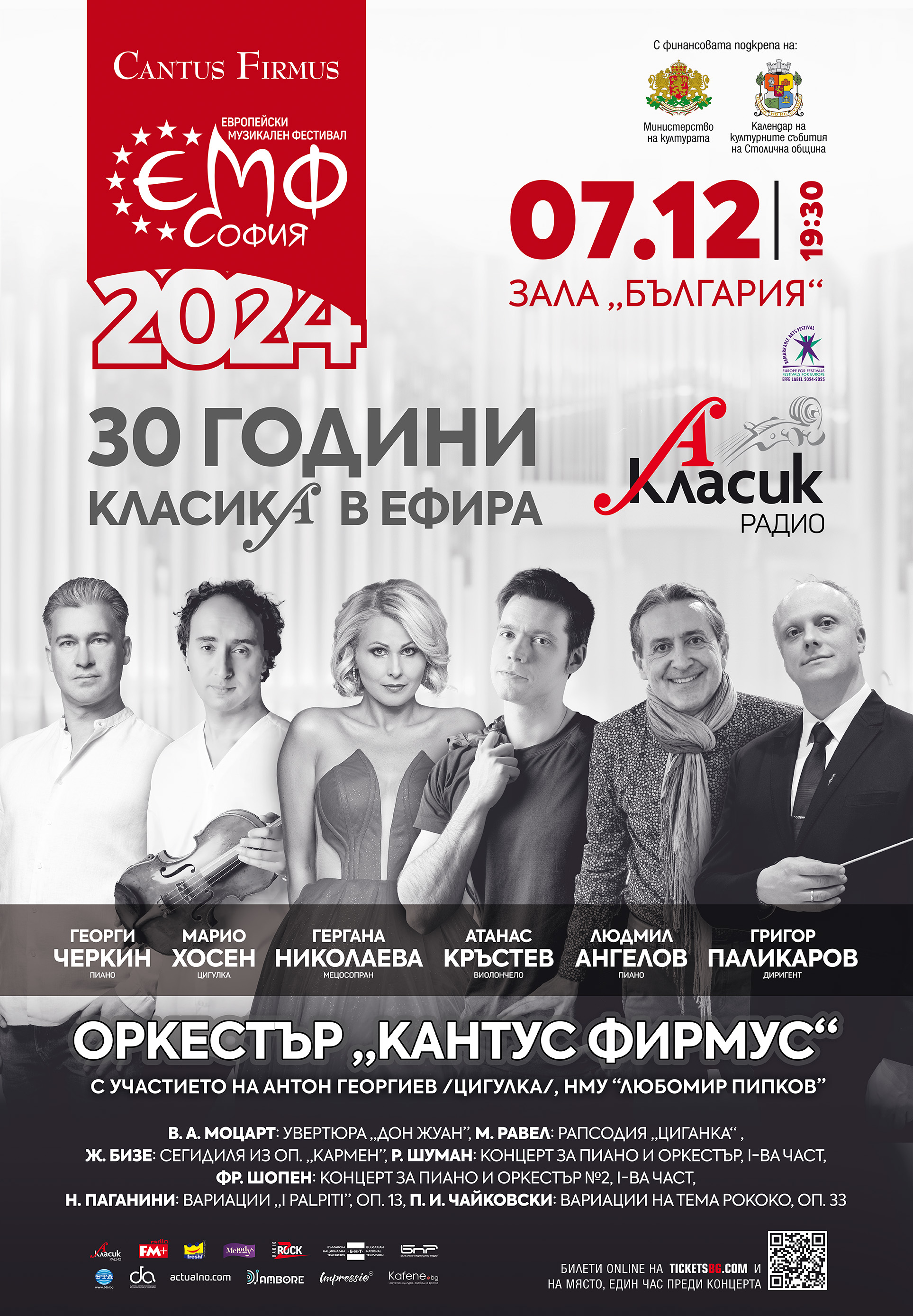 През 1995 година, когато първото българско радио за класическа музика, тогава с името "Класик FM", навършва една година от създаването си, празникът е отбелязан с голям концерт, в който солист е един млад пианист – Георги Черкин. Тогава той все още е ученик в Националното музикално училище "Любомир Пипков" в София и това събитие има важно значение за развитието на сценичната му кариера. Концертът за рождения ден на българското радио за класическа музика се превръща в традиция и през следващите години в тези празнични събития участват прочути наши и гостуващи изпълнители, сред които оперната прима Анна Томова-Синтова, американското сопрано Джанина Бърнет, цигуларката Мила Георгиева, диригентите Емил Табаков, Росен Миланов, Андреас Херман (Германия), Григор Паликаров, Детски хор "Пим-Пам", Софийската филхармония, Нов симфоничен оркестър, Камерен оркестър на Сарагоса (Испания) и, разбира се, – Оркестър "Кантус Фирмус" (до 2023 г. с името Оркестър на Класик ФМ радио).