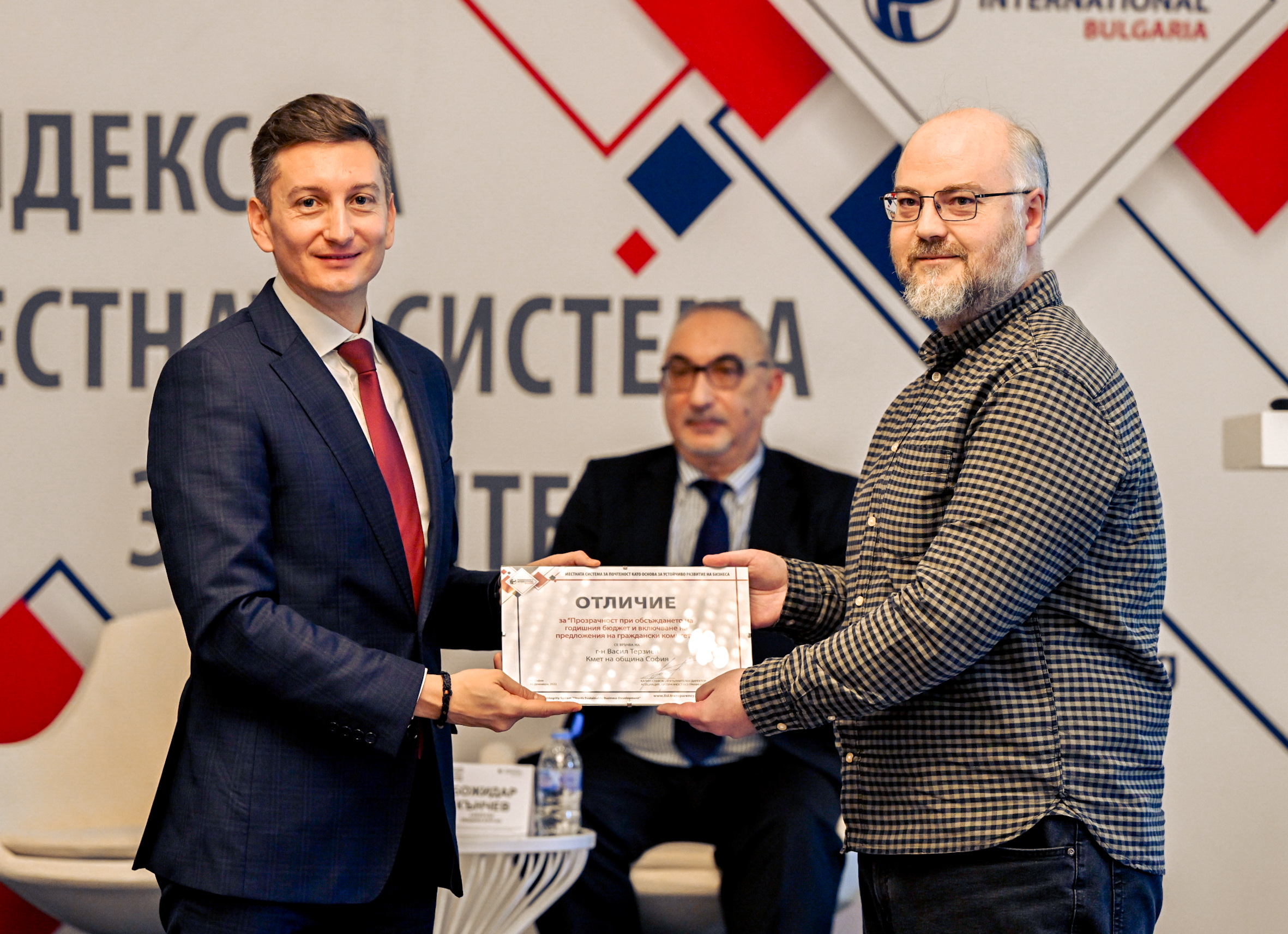Отличие за прозрачност при обсъждането на годишния бюджет на общината и включването на предложения на гражданите чрез граждански бюджети в плана за управление и бюджета на София получи Столичната община на представянето на годишните резултати от изследването на Индекса на местната система за почтеност за 2024 г. – перспективи за развитие“, направен от Агенция „Прозрачност без граници“/Transparency International Bulgaria.