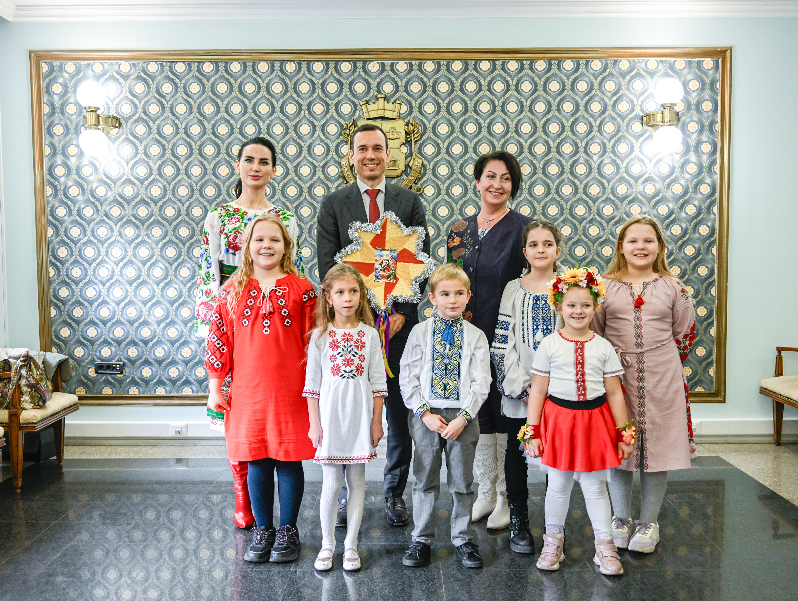 С коледни песни и стихове украински деца, които живеят в София, поздравиха кмета Васил Терзиев с настъпващите коледни празници.