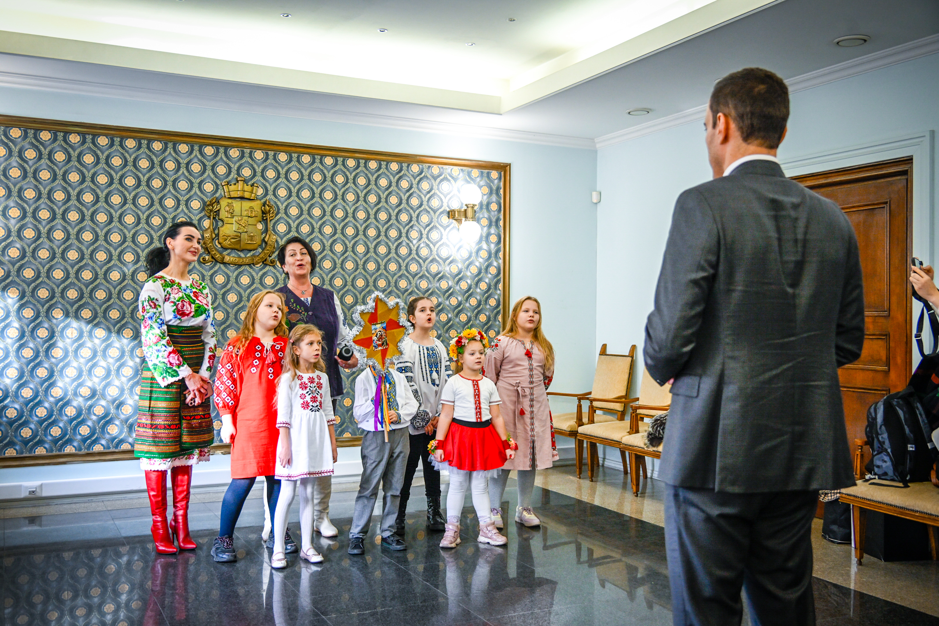 Малките коледари дойдоха в Столичната община водени от посланика на Украйна в България Н. Пр. Олеся Иласчук и изпълниха песни и стихове на български и украински език.