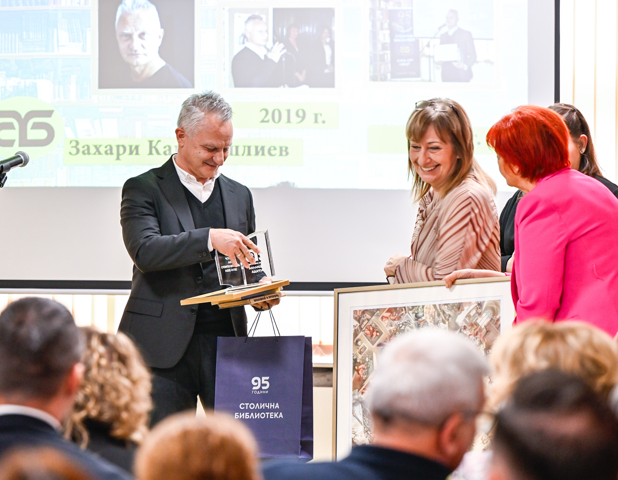 Столичната библиотека връчи Десетите юбилейни „Годишни награди“ Писател на годината & Читател на годината – 2024. „За мен беше чест да присъствам на награждаването на най-добрите съвременни автори на десетилетието, писателите, които оставят трайна следа в българската и световна литература и най-вече в света на всеки от нас – техните читатели", каза зам.-кметът в направление „Култура, образование, спорт и младежки дейности“ Благородна Здравкова. Тя връчи наградата на Захари Карабашлиев, който е един от петте автори на десетилетието, и му благодари за книгите и таланта, които споделя със своите читатели.
