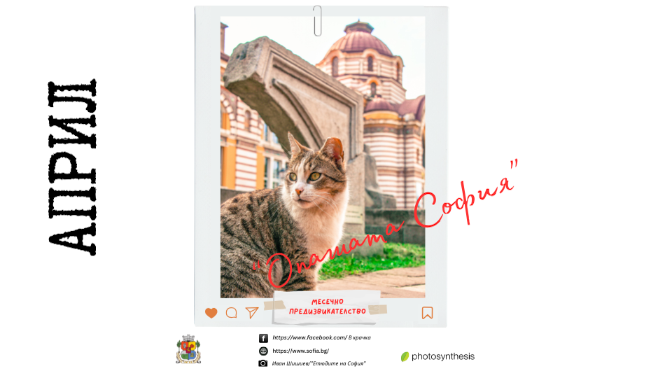 С началото на април идва времето и за второто месечно фотопредизвикателство. Темата е „Опашата София“, а снимки на приятелчетата ни, били те на четири лапи, пернати, опашати или с бодли, но всички с настоящ адрес в София, може да изпращат младите хора на столицата (от 8. клас до 29 години). Кадрите се изпращат до 10-о число на месеца на e-mail mladi@sofia.bg, качват се от администратор на официалната страница на конкурса и до 20-о число събират харесвания. Десетте снимки с най-много харесвания стигат до жури, което определя месечния победител.