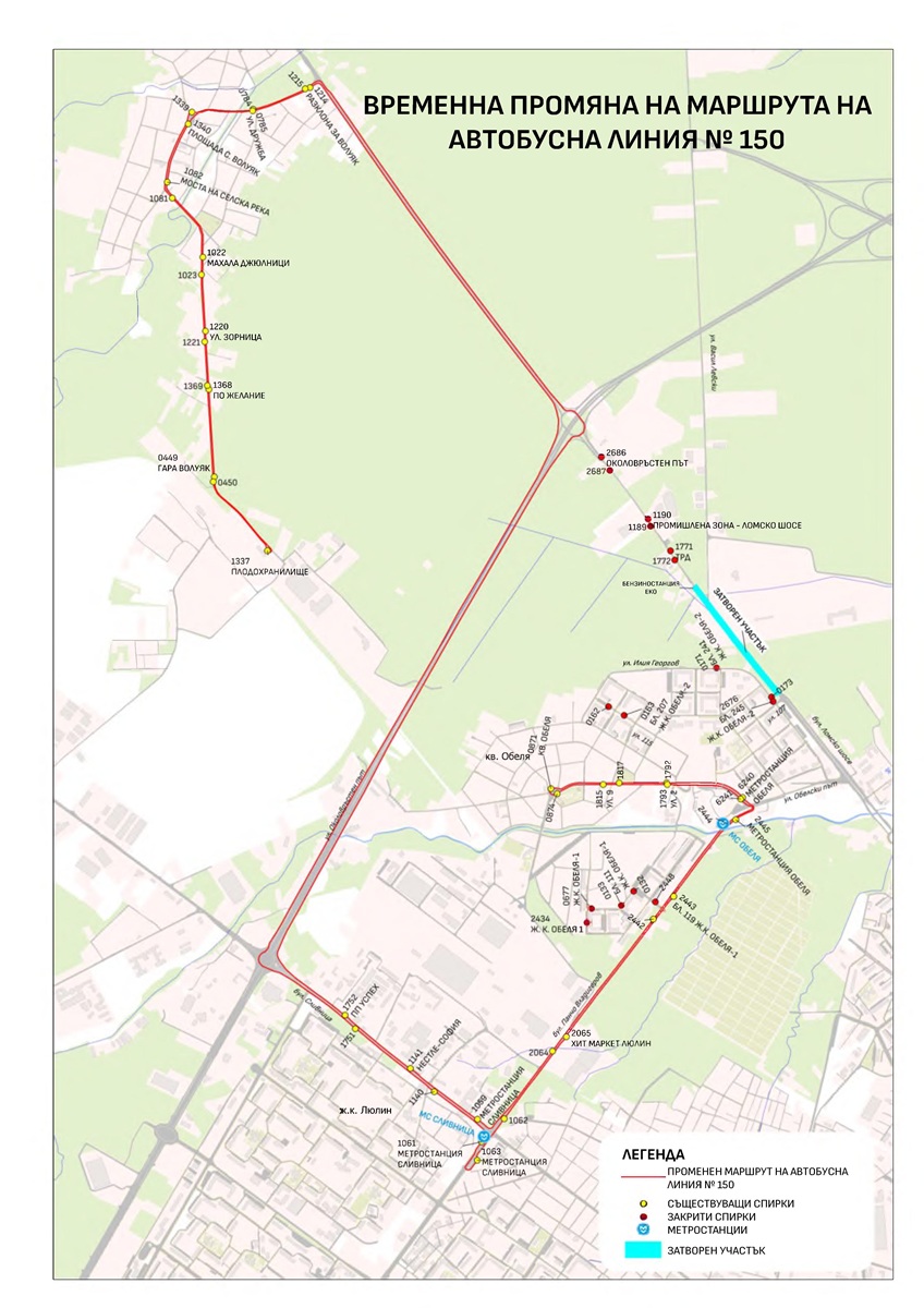 От 23:00 часа на 08.08.2025 г. до 23:59 часа на 10.08.2025 г. автобусите от линии №№ 30, 31 и 150  ще се движат по променени маршрути.