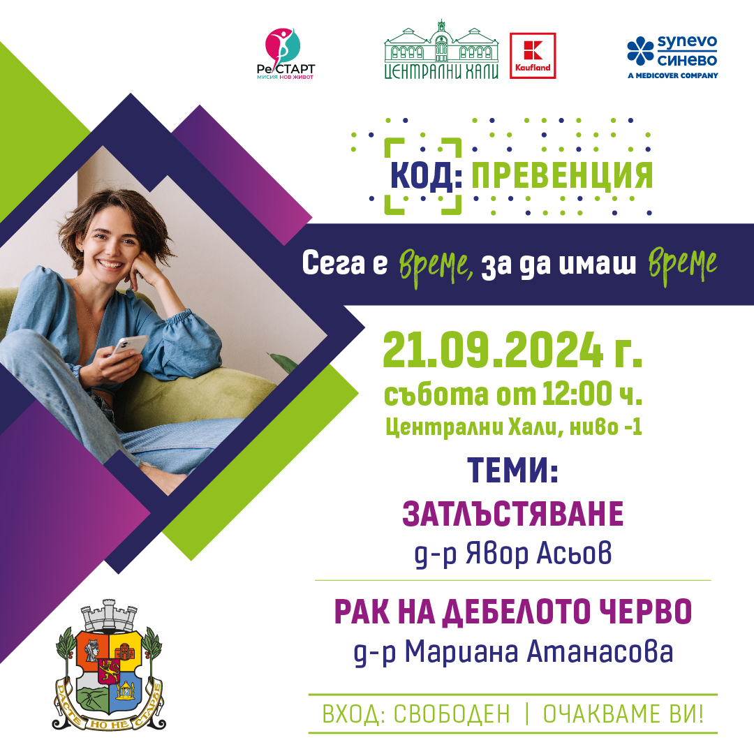 Кампанията „КОД: ПРЕВЕНЦИЯ. Сега е време, за да имаш време“ се организира от Столичната община и Фондация „РеСтарт“, в партньорство с "Kaufland България" и лаборатории "Синево България".