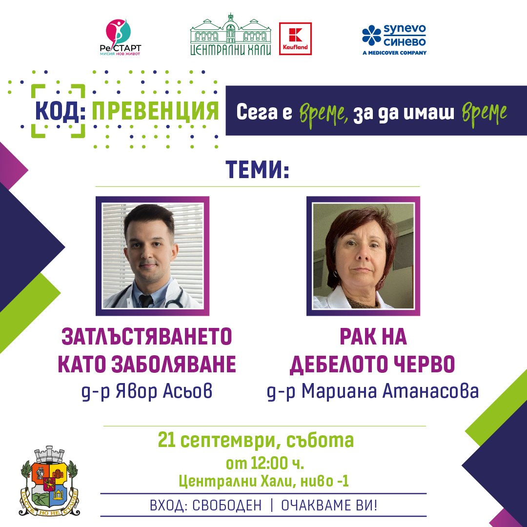 Първото от серията безплатни здравни събития, част от кампанията „КОД: ПРЕВЕНЦИЯ. Сега е време, за да има време“, поставя под светлините на прожекторите две важни теми – затлъстяването и заболяванията на дебелото черво.