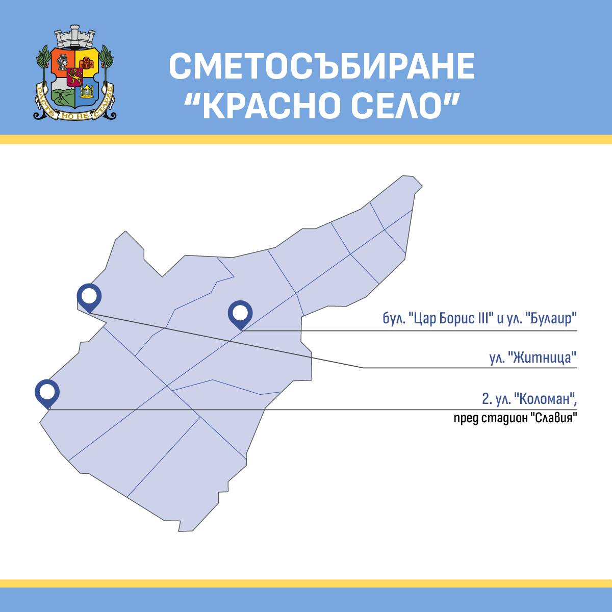 В периода от 5 до 19 октомври 2025 г. в районите „Люлин“ и „Красно село“ се въвежда кризисна организация на сметопочистването. Столичната община мобилизира всички свои ресурси, за да гарантира редовното извозване на отпадъците и чистотата в кварталите. За успешното прилагане на организацията е необходимо активно съдействие от всички жители.