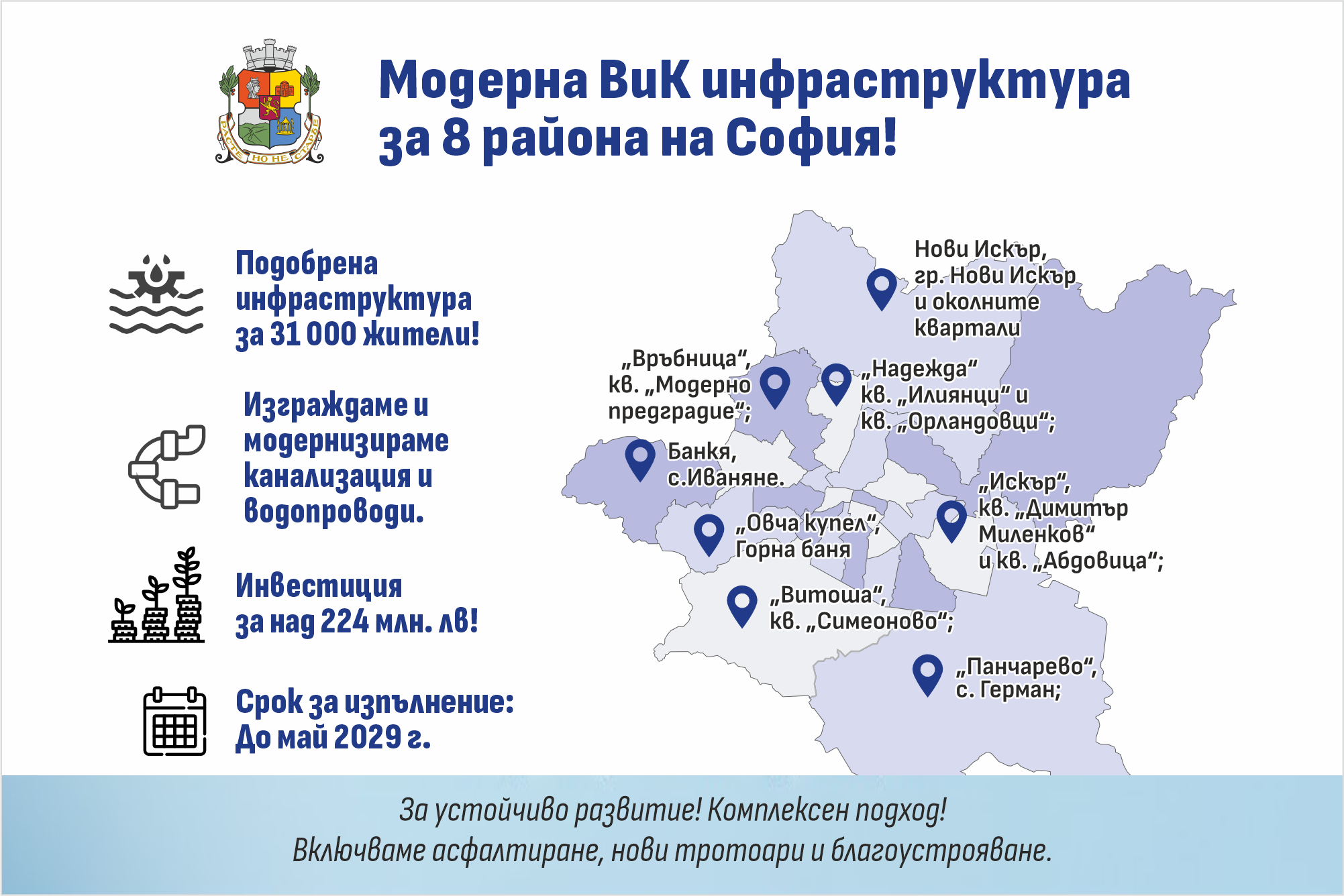 Инвестициите ще обхванат квартали и населени места в осем района на столицата: