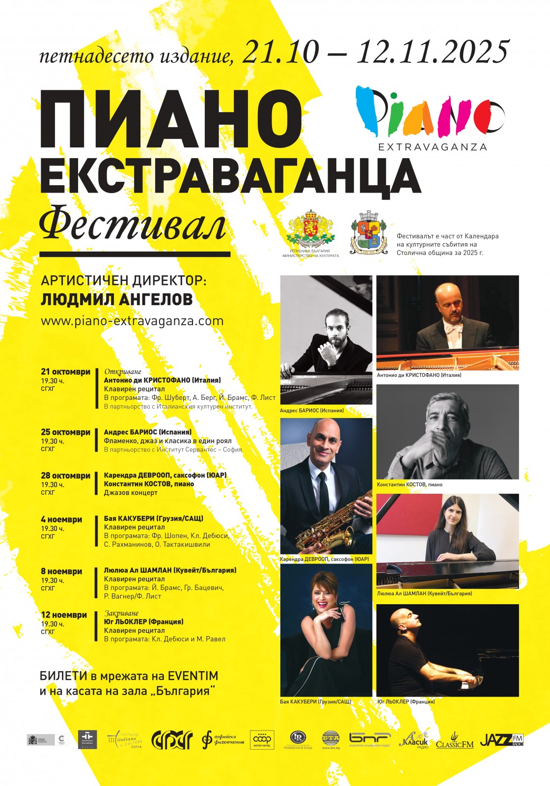 От 21 октомври до 12 ноември се провежда 15-ото издание на Международния музикален фестивал "Пиано Екстраваганца".