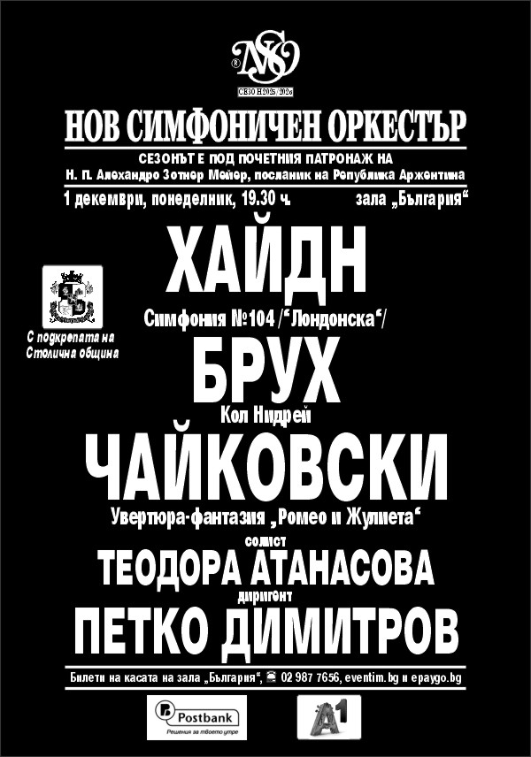В програмата: Кол Нидрей от Макс Брух, Увертюра-фантазия "Ромео и Жулиета" от Чайковски и Лондонска симфония (№ 104) от Хайдн.