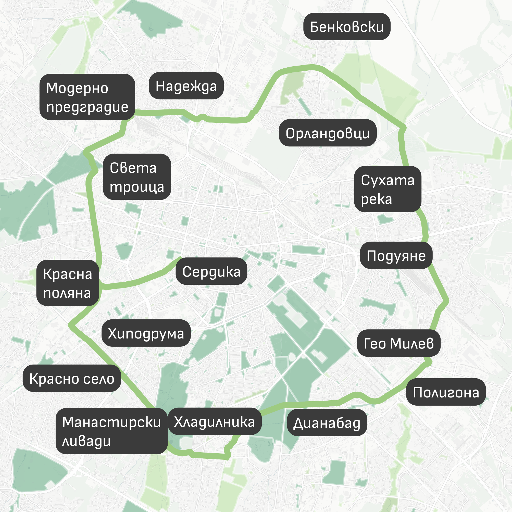 Зеленият ринг е един от ключовите стратегически проекти за развитието на София – проект, който показва как градът може да се развива цялостно, устойчиво и с мисъл за хората. С дължина около 30 километра, бъдещият линеен парк ще свърже над 30 жилищни квартала и ще осигури пряк достъп до зелената система на града за повече от 250 000 жители.