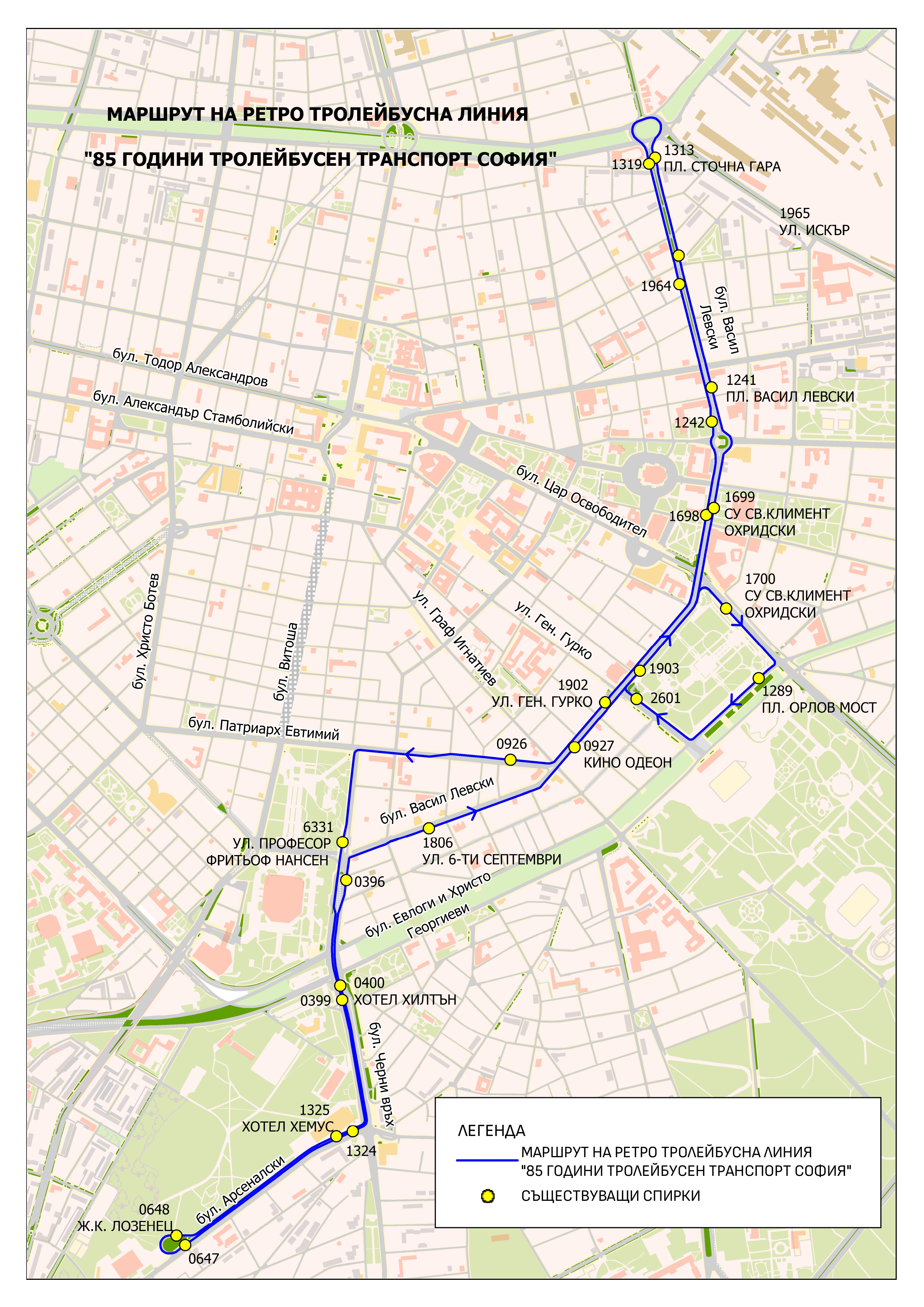 Тролеите ще потеглят на всеки 30 минути, в интервала от 12:30 ч. до 14:00 ч., с начална спирка ул. „Гурко“.