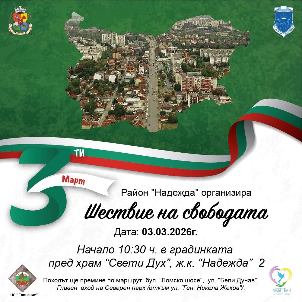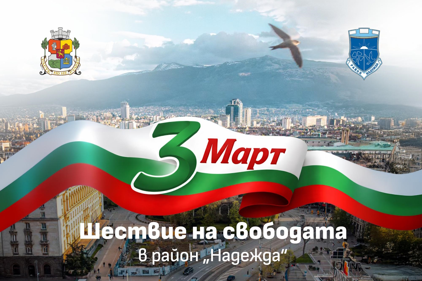 Район “Надежда” ви кани на "Шествие на свободата" по повод 3 март – Национален празник на Република България!