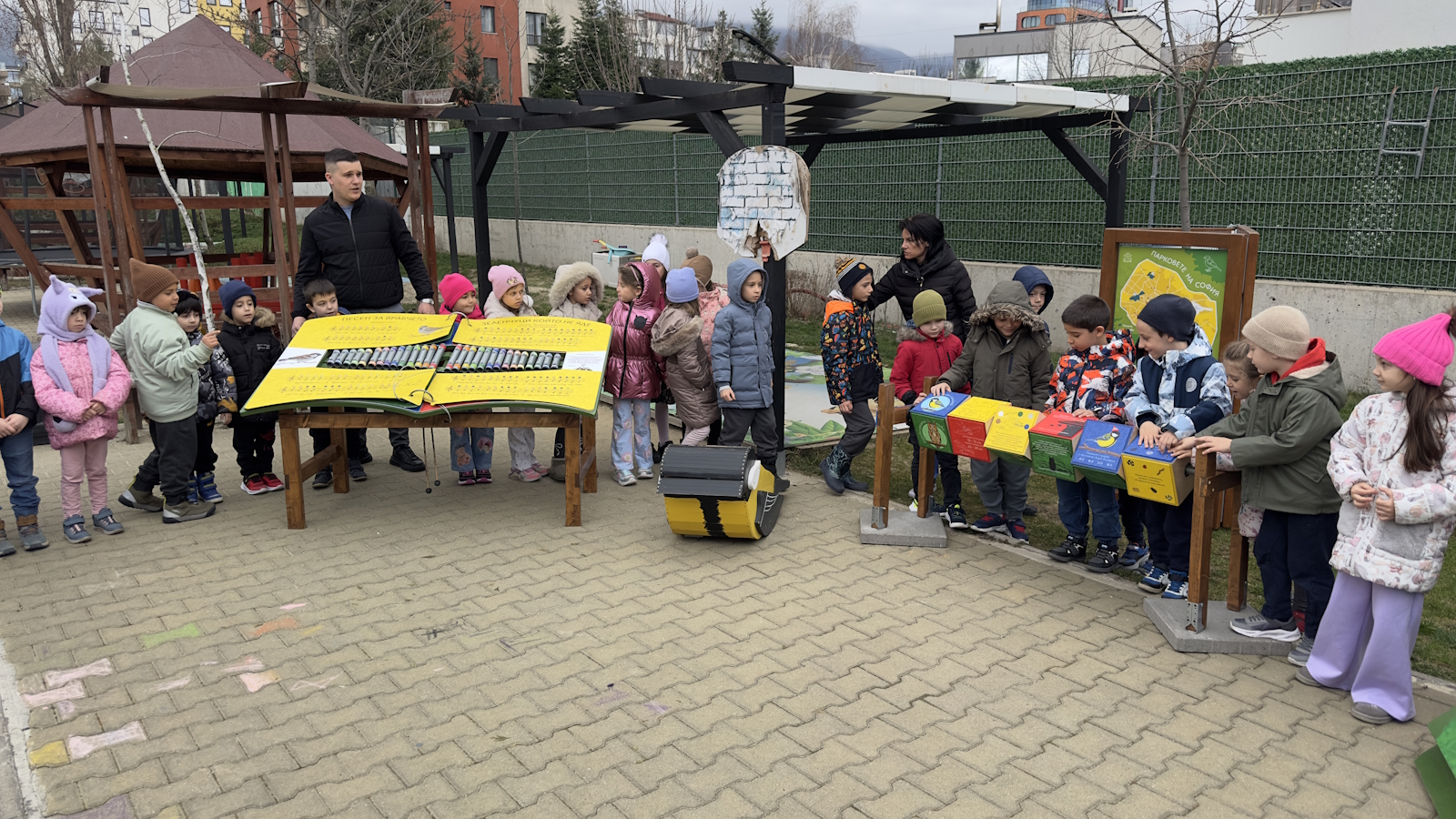 Интерактивната детска площадка „Чичопей“ кацна в ДГ №175 Слънчеви лъчи - сграда 2, "Кръстова вада", отбелязвайки своето трето посещение. Малките възпитаници посрещнаха мобилната образователна инсталация с огромно вълнение и любопитство, превръщайки двора в сцена на знание, творчество и откривателство.