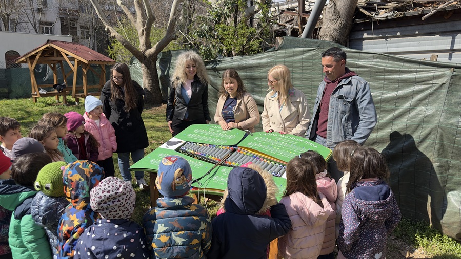 В навечерието на Великден интерактивната детска площадка „Чичопей“ намери своя четвърти дом в ДГ. 199 „Сарагоса“. Площадката беше посрещната от усмихнатите възпитаници на детската градина, които с огромно любопитство разгледаха всички модули и присъстваха на специален урок, воден от автора на проекта Ралица Костадинова – участник в Академия за ВИЗИОИНЕРИ“ 2025.