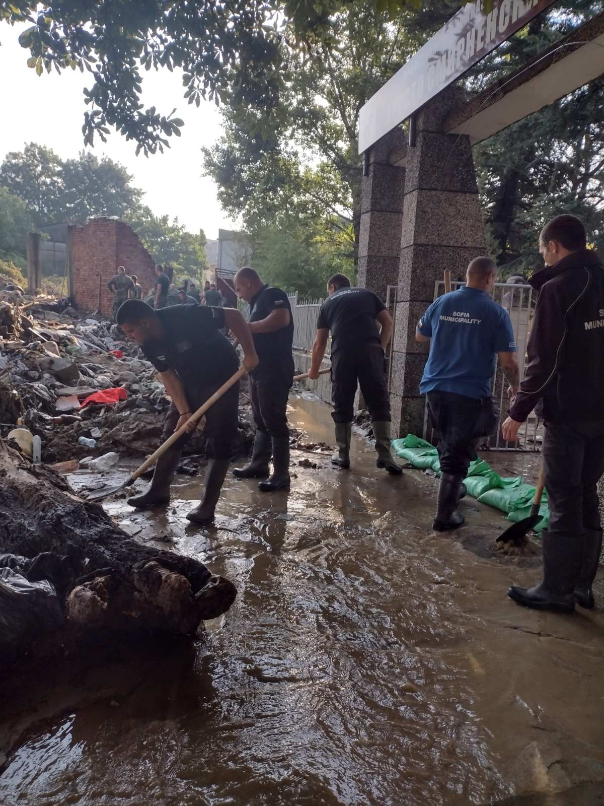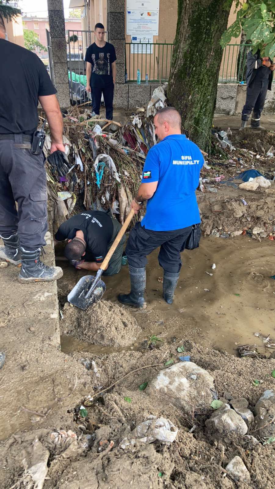 Аварийни екипи на Столична община оказват помощ на пострадалите от наводнението в Карлово