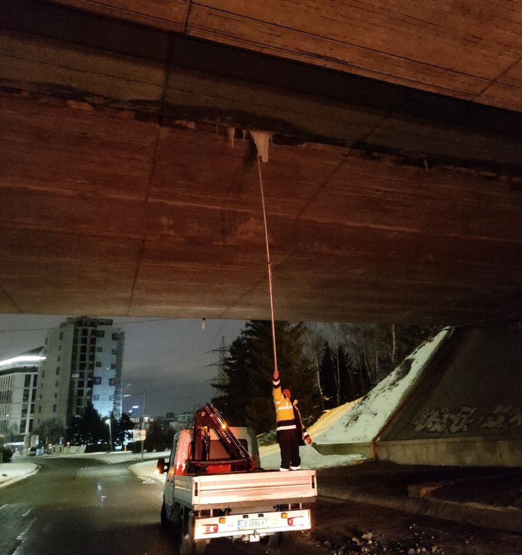 Аварийните екипи на общината почистиха ледени висулки от транспортни надлези