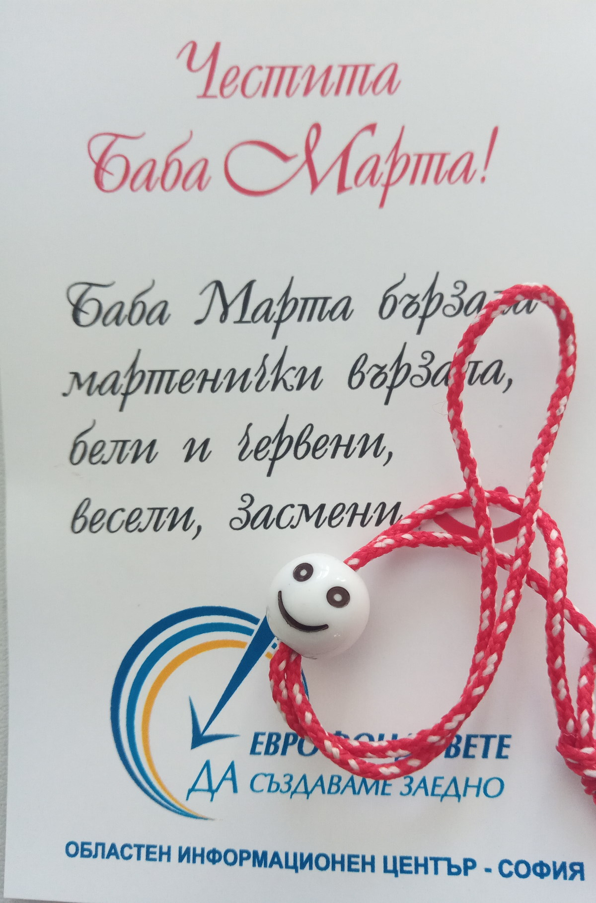 По случай 1 март екипът на Областен информационен център София-град и София-област за популяризиране на Европейските структурни и инвестиционни фондове (ОИЦ – София) организирахме работилница за изработване на мартеници. В продължение на седмица четвъртокласници от 47. СУ „Христо Данов“ в столицата участваха в инициативата. Децата вложиха изключителен ентусиазъм и любов в направата им.