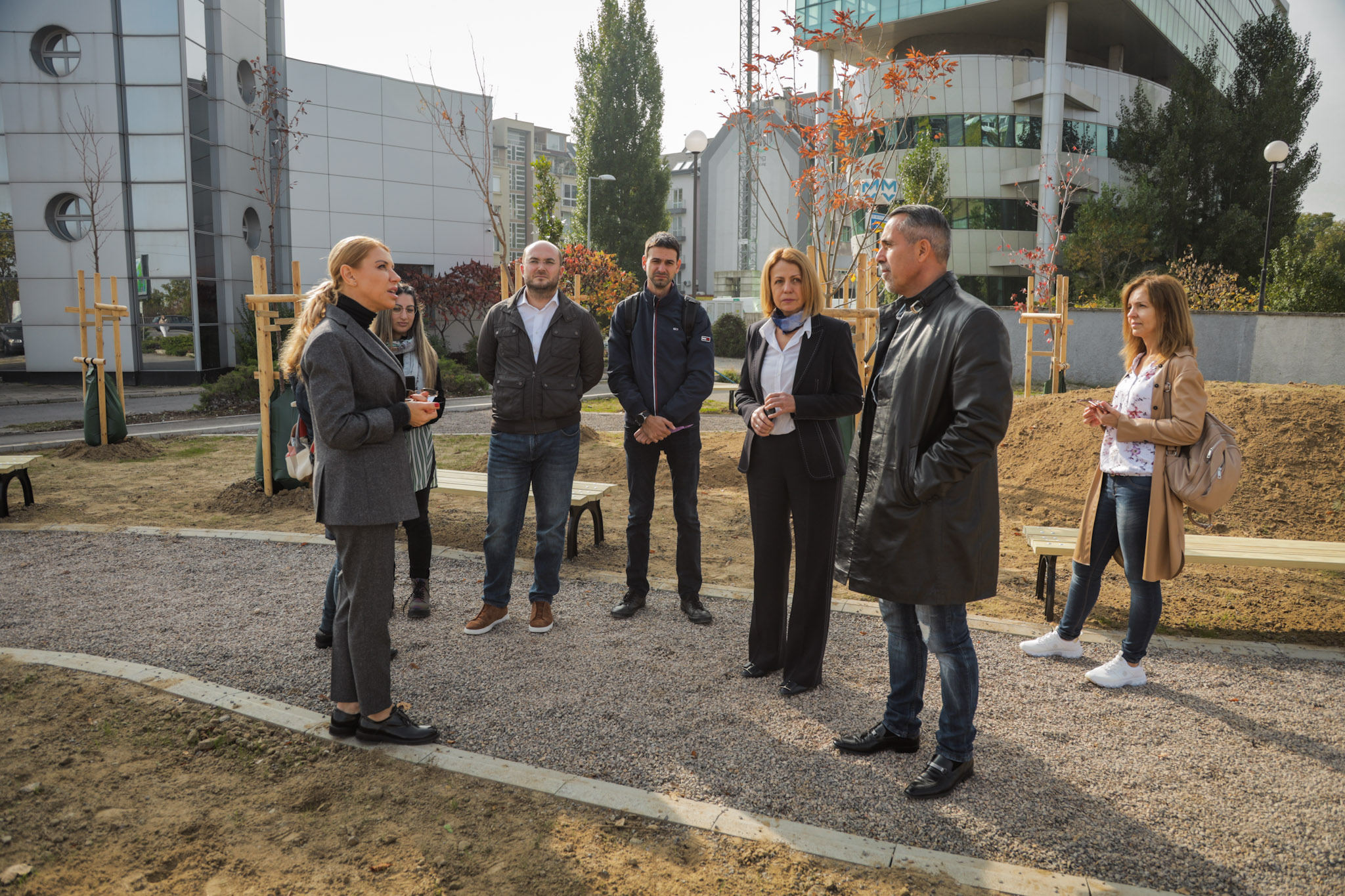 „Столичната община работи заедно със Софийския университет „Свети Климент Охридски“ и Лесотехническия университет по въвеждане на мерки за смекчаване на ефекта от „топлинния остров“ – каза зам.-кметът на Столичната община Десислава Билева. Измененията на климата налагат изпълнението на нови проекти, включващи иновативни решения за подобряване на топлинния комфорт на градските пространства. „С проекта се постигат три ефекта – биологично разнообразие от съчетаване на различните видове дървета и храсти, ограничаване на запрашаването и използването на иновативен начин за поливане на дърветата. С помощта на поставени около стволовете на фиданките торби се осигурява капково напояване и запазване на влажността.