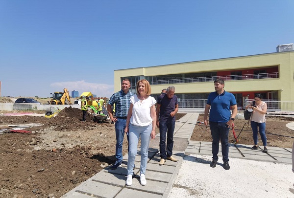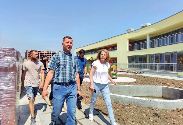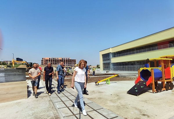 Към момента строителните бригади извършват довършителни дейности в сградата и работят по оформянето на детските площадки в двора.