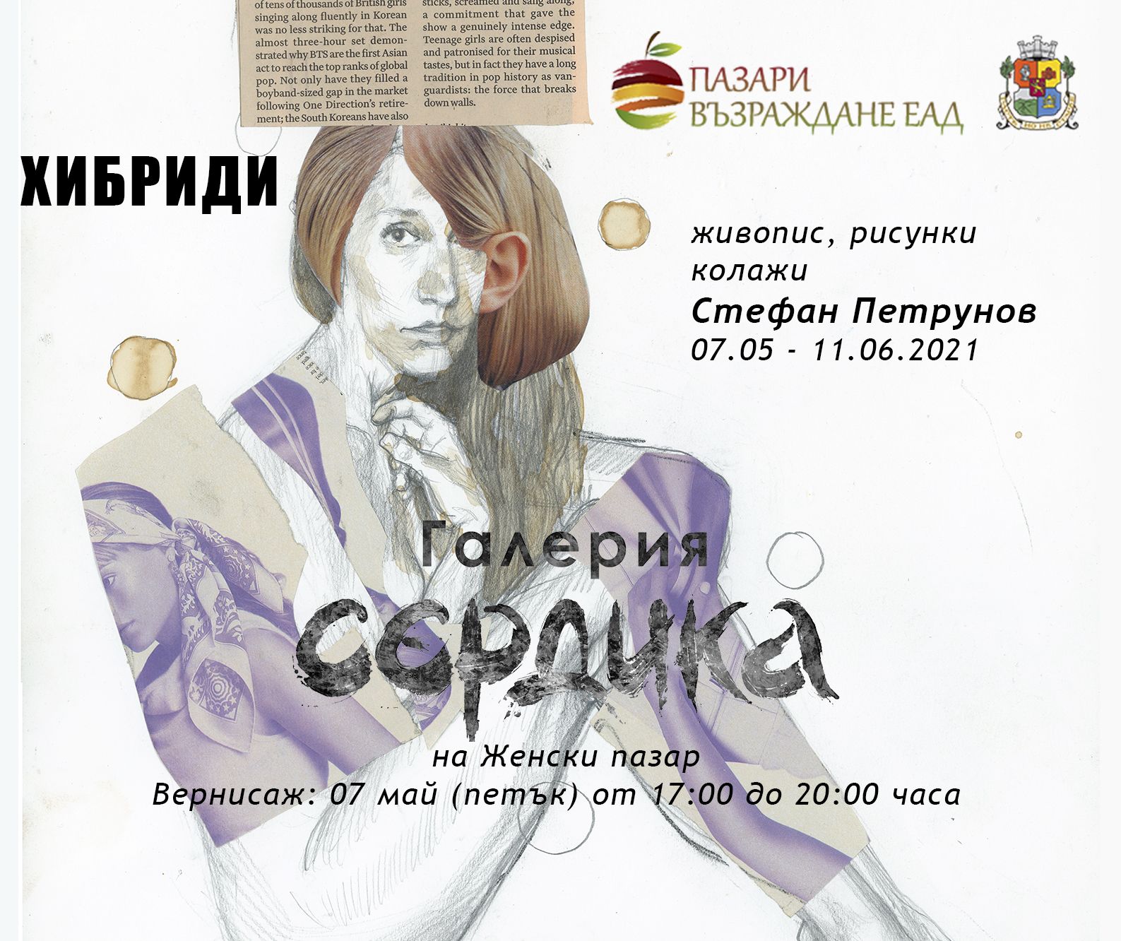 Галерия "Сердика" представя новата изложба на Стефан Петрунов „ХИБРИДИ“ – живопис, рисунки и колажи, която ще бъде показана от 7 май до 11 юни 2021 г. в артпространството на Женски пазар при спазване на всички противоепидемични мерки.