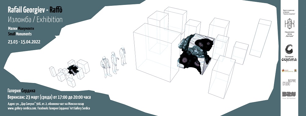 Галерия „Сердика“ представя „МАЛКИ МОНУМЕНТИ“ на Рафаил Георгиев – Raffò. Експозицията от концептуализирани реплики на негови вече известни скулптури може да бъде видяна от 23 март до 15 април. Вернисажът е на 23 март (сряда) 2022 г. от 17:00 до 20:00 часа при спазване на всички задължителни противоепидемични мерки.